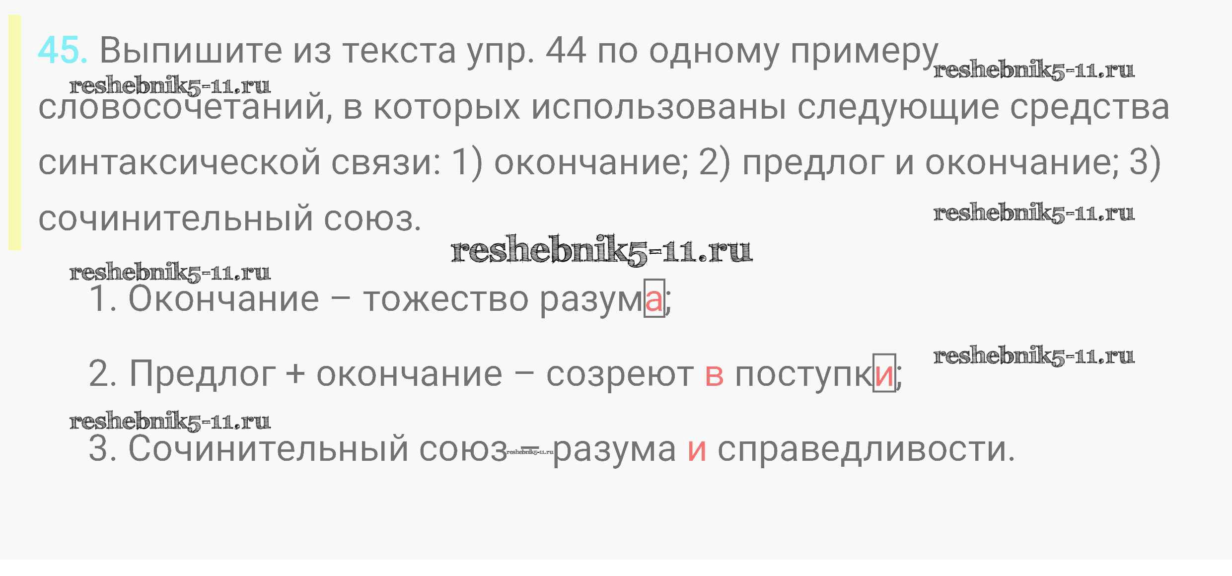 Готовая домашняя работа с ответами по Русскому языку за 8 класс Пичугов, Еремеева, Купалова, Леденева Практика Вертикаль Дрофа 2016 ФГОС - Упражнения 45