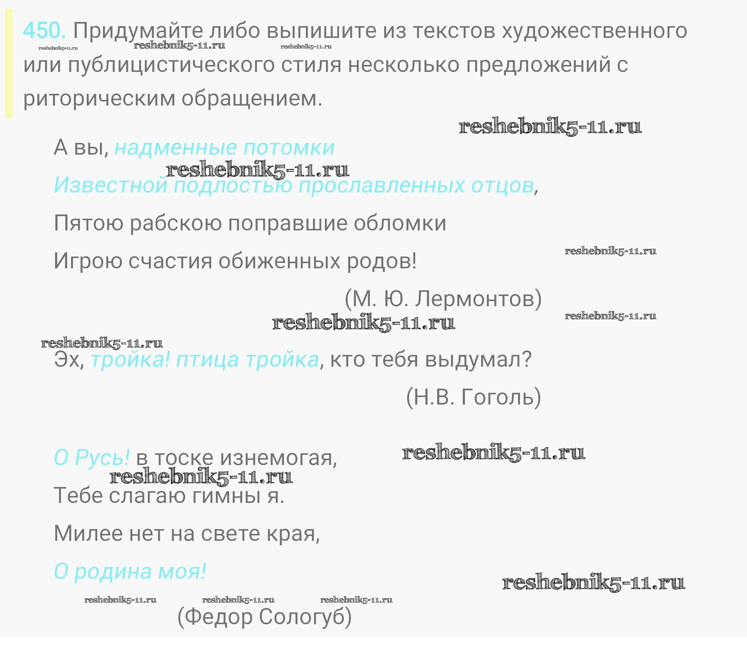 Готовая домашняя работа с ответами по Русскому языку за 8 класс Пичугов, Еремеева, Купалова, Леденева Практика Вертикаль Дрофа 2016 ФГОС - Упражнения 450