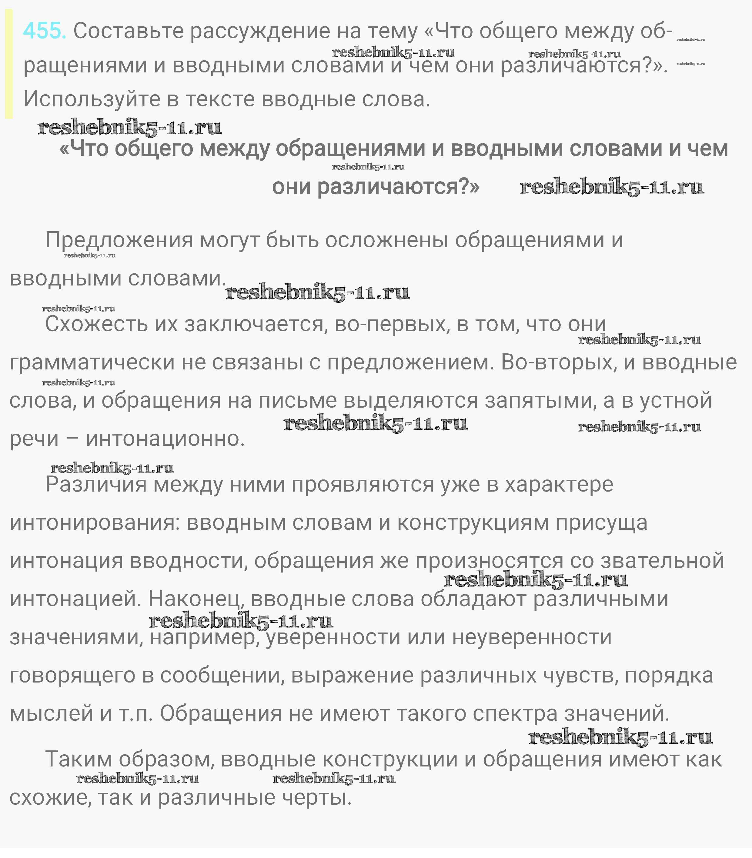Готовая домашняя работа с ответами по Русскому языку за 8 класс Пичугов, Еремеева, Купалова, Леденева Практика Вертикаль Дрофа 2016 ФГОС - Упражнения 455