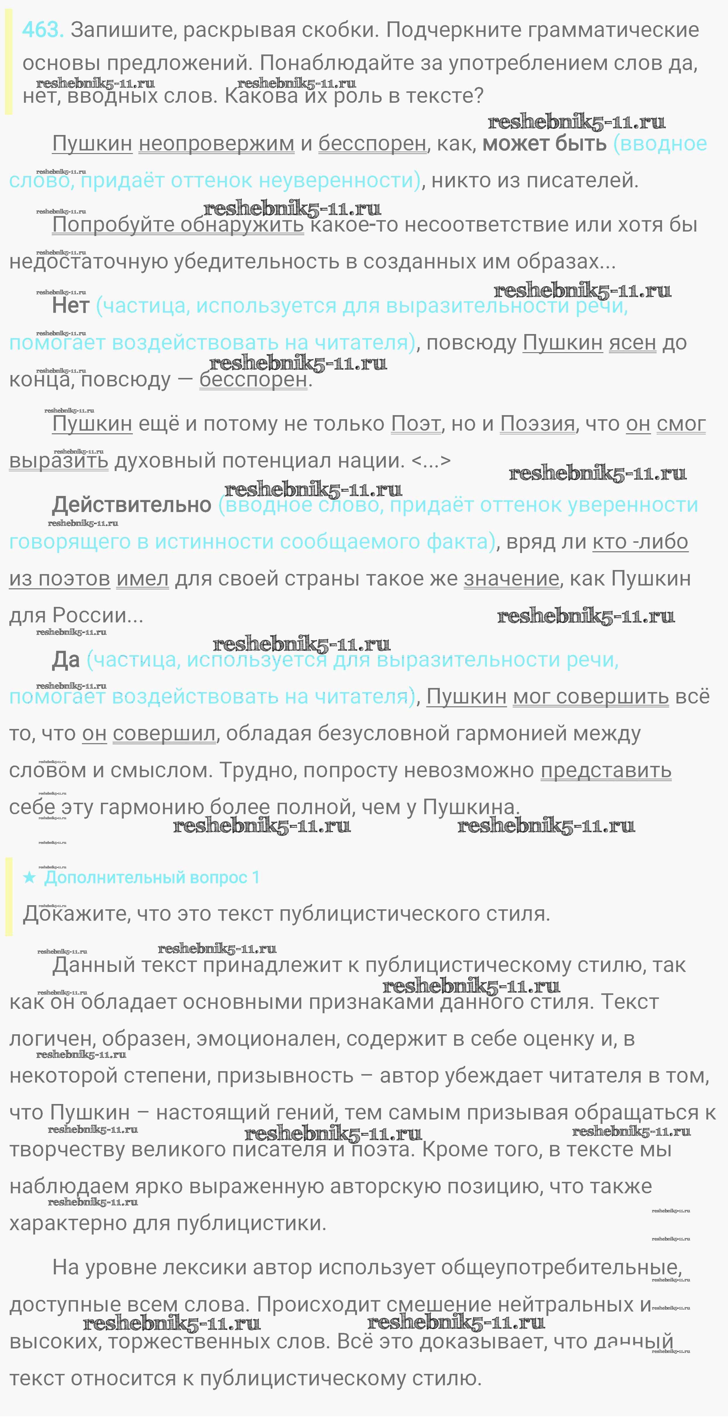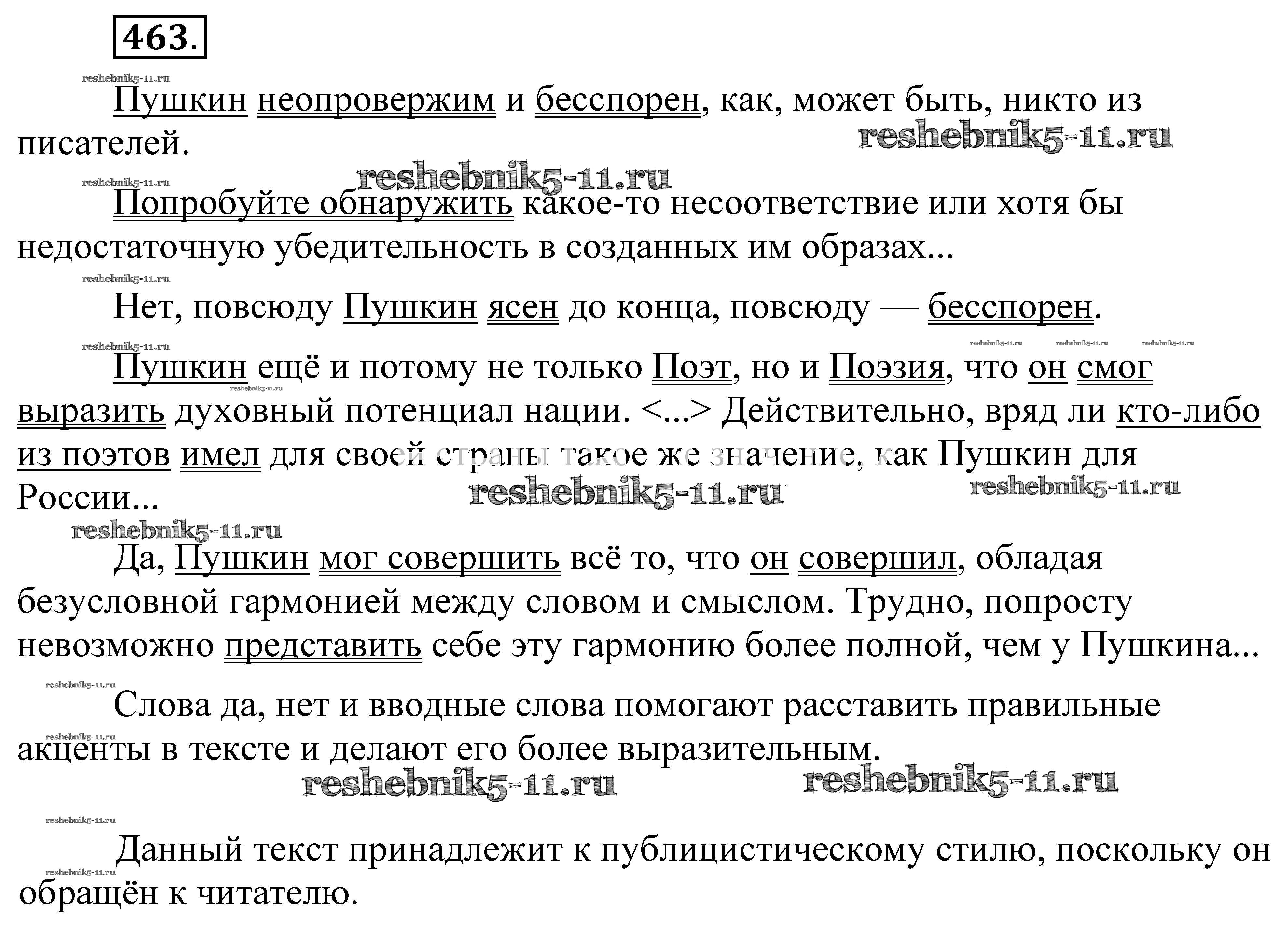 Готовая домашняя работа с ответами по Русскому языку за 8 класс Пичугов, Еремеева, Купалова, Леденева Практика Вертикаль Дрофа 2016 ФГОС - Упражнения 463