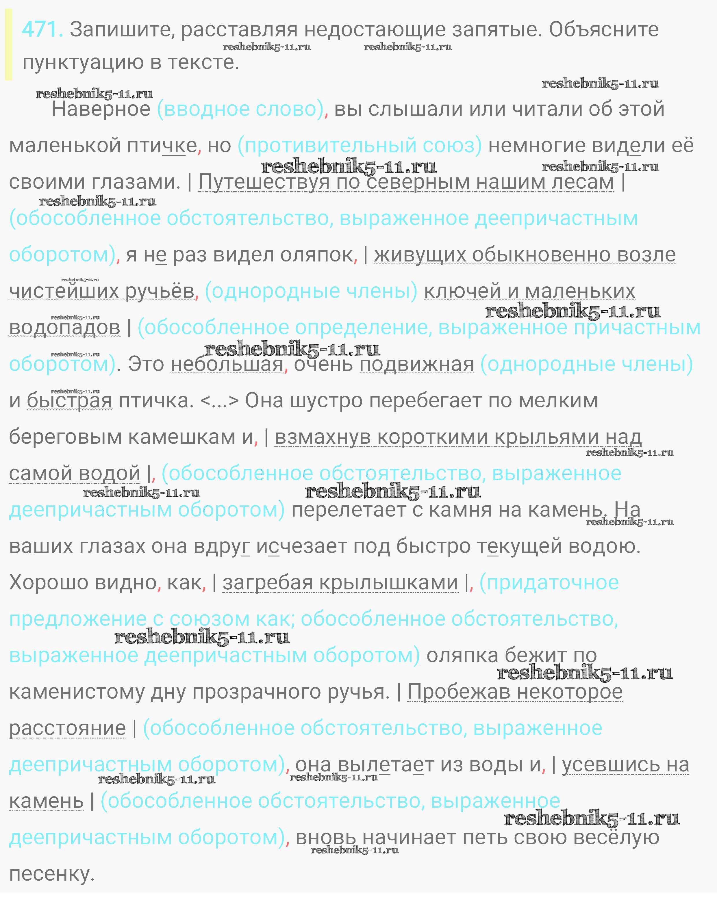 Готовая домашняя работа с ответами по Русскому языку за 8 класс Пичугов, Еремеева, Купалова, Леденева Практика Вертикаль Дрофа 2016 ФГОС - Упражнения 471