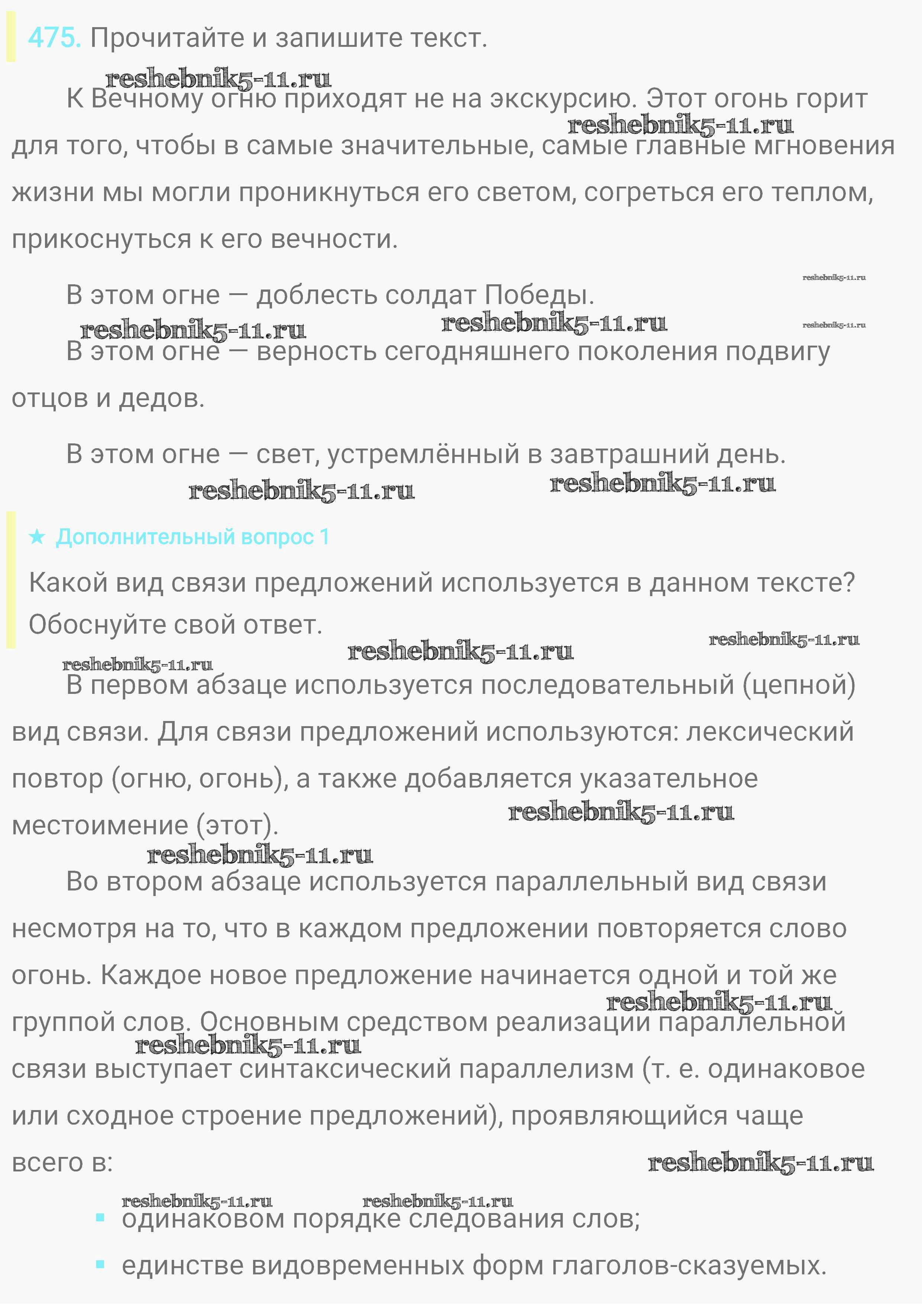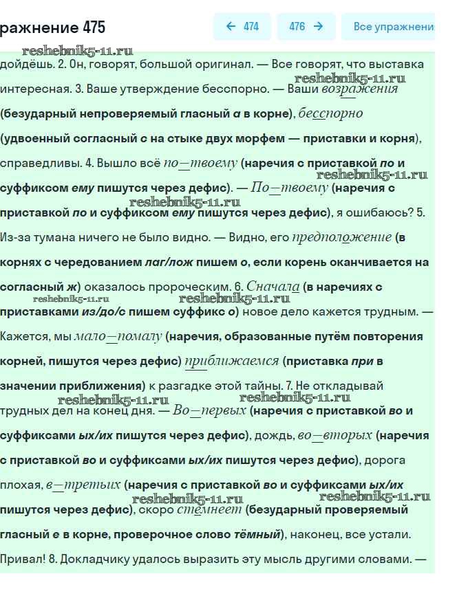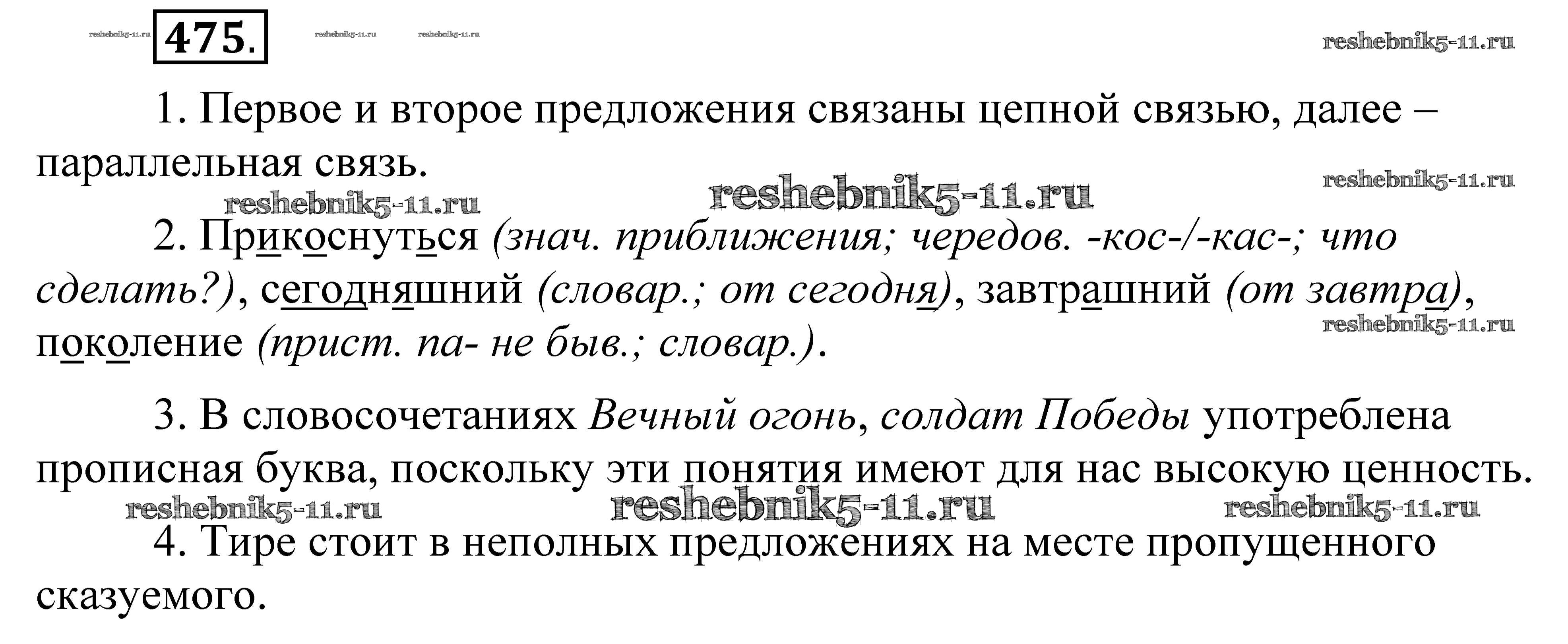 Готовая домашняя работа с ответами по Русскому языку за 8 класс Пичугов, Еремеева, Купалова, Леденева Практика Вертикаль Дрофа 2016 ФГОС - Упражнения 475