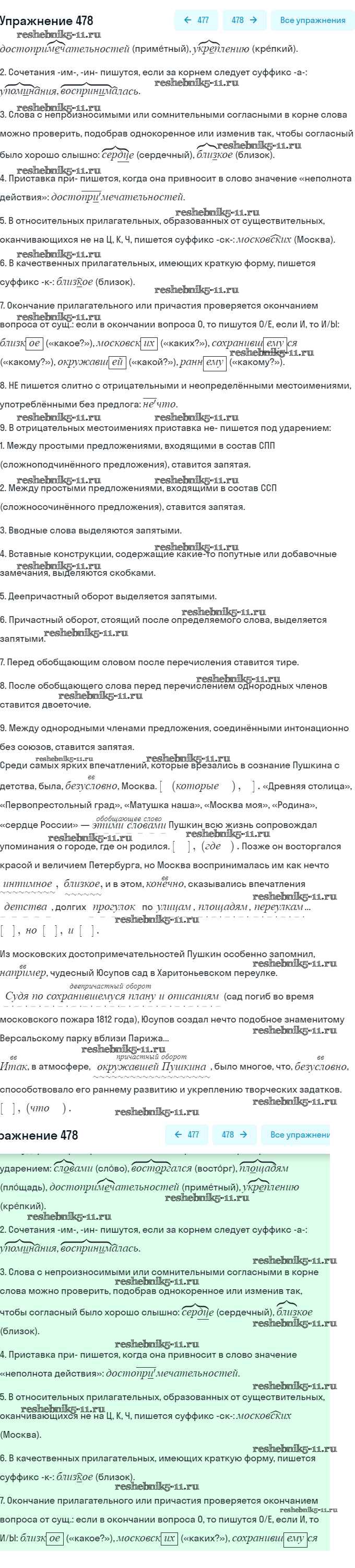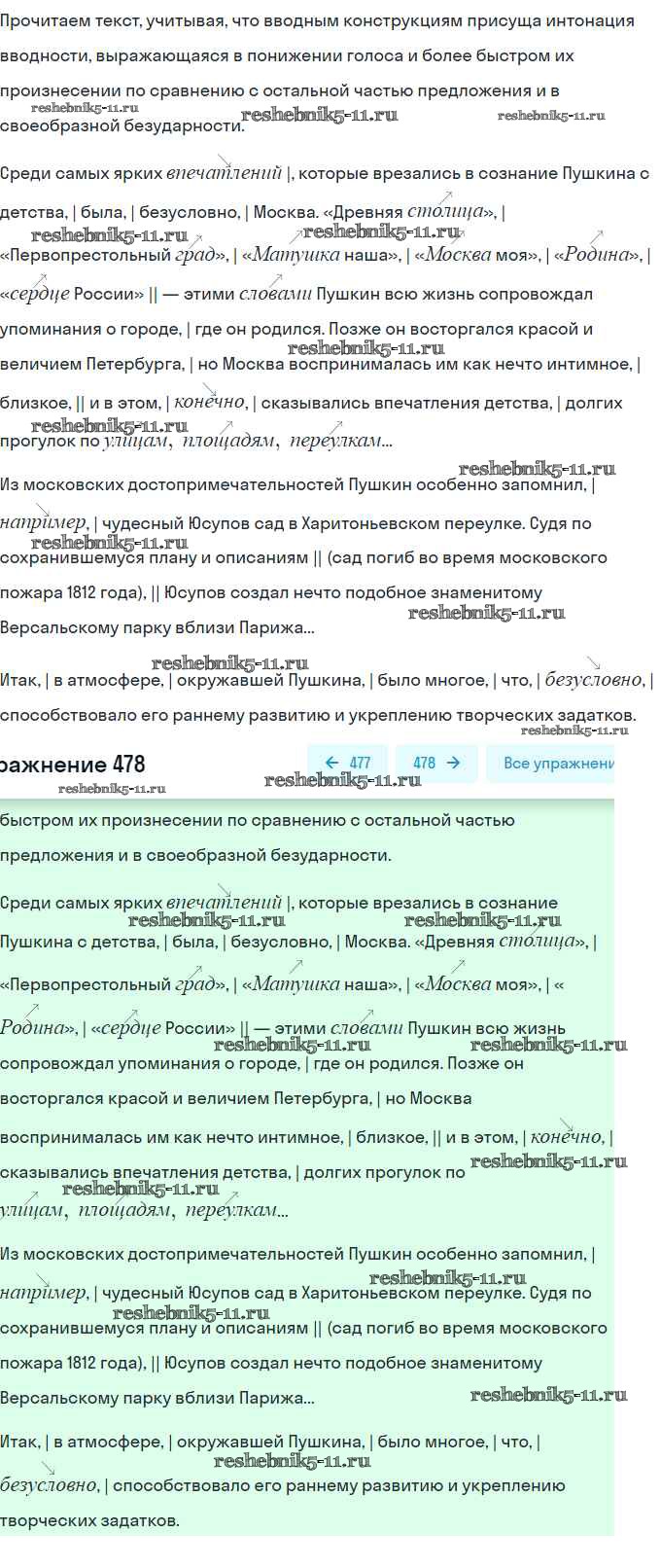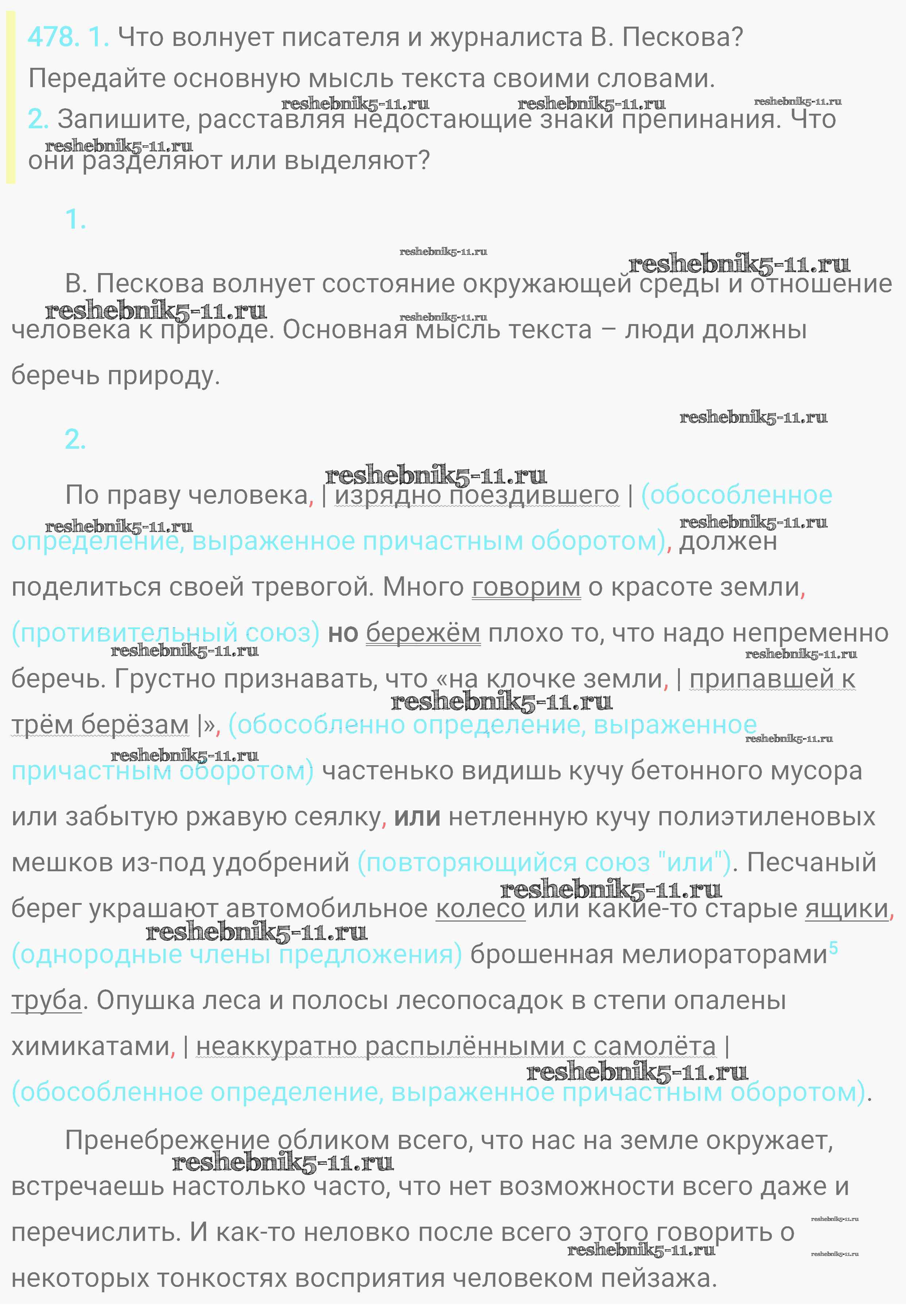 Готовая домашняя работа с ответами по Русскому языку за 8 класс Пичугов, Еремеева, Купалова, Леденева Практика Вертикаль Дрофа 2016 ФГОС - Упражнения 478