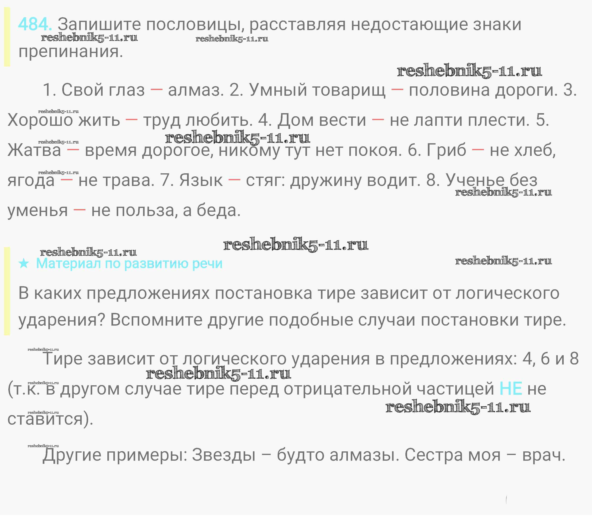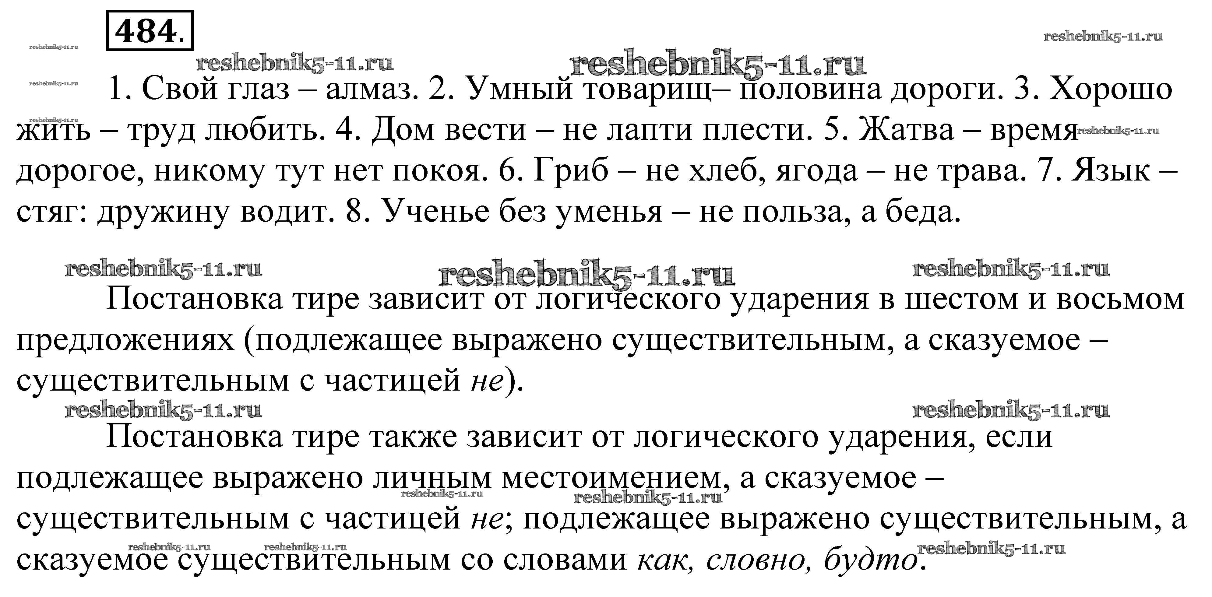 Готовая домашняя работа с ответами по Русскому языку за 8 класс Пичугов, Еремеева, Купалова, Леденева Практика Вертикаль Дрофа 2016 ФГОС - Упражнения 484