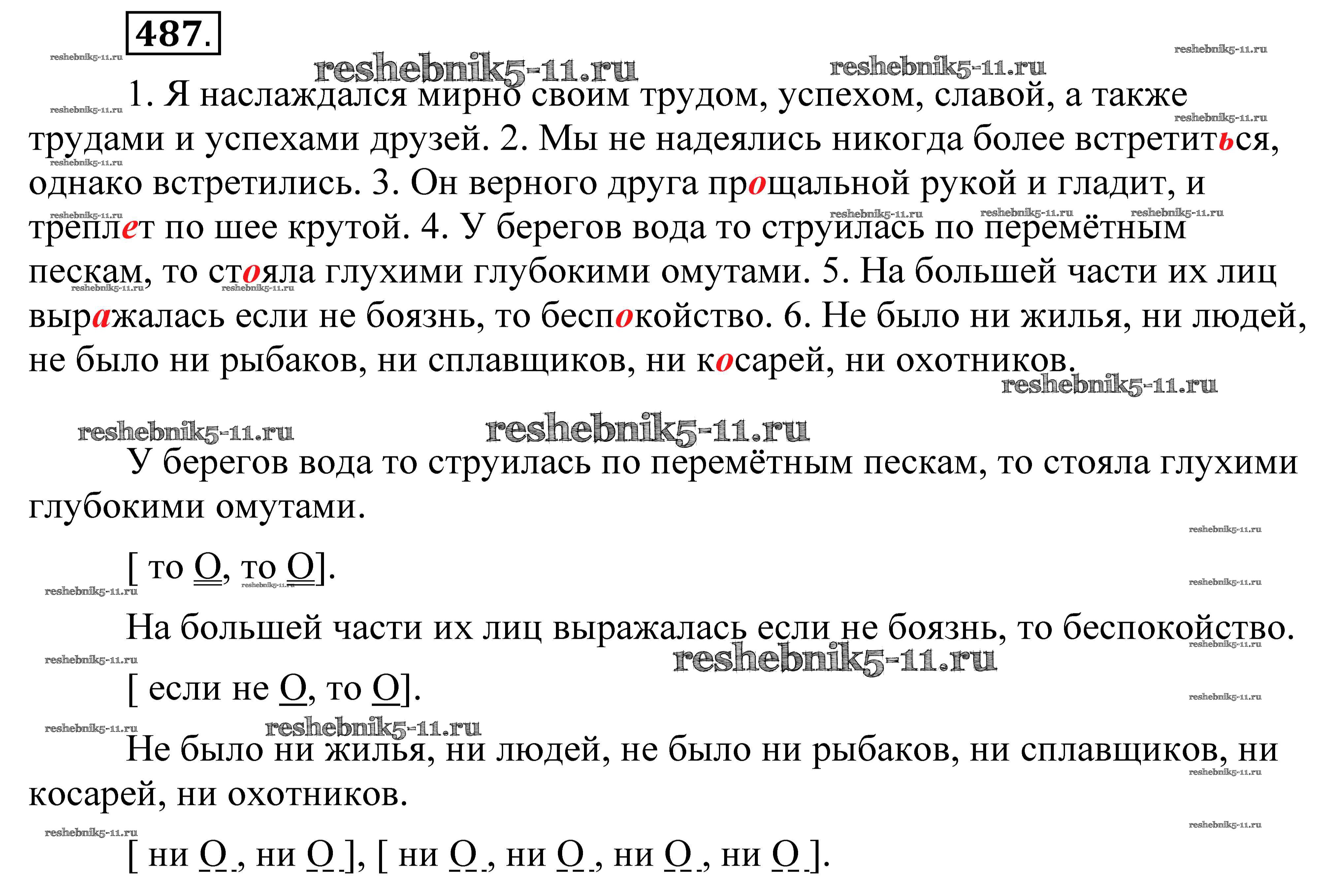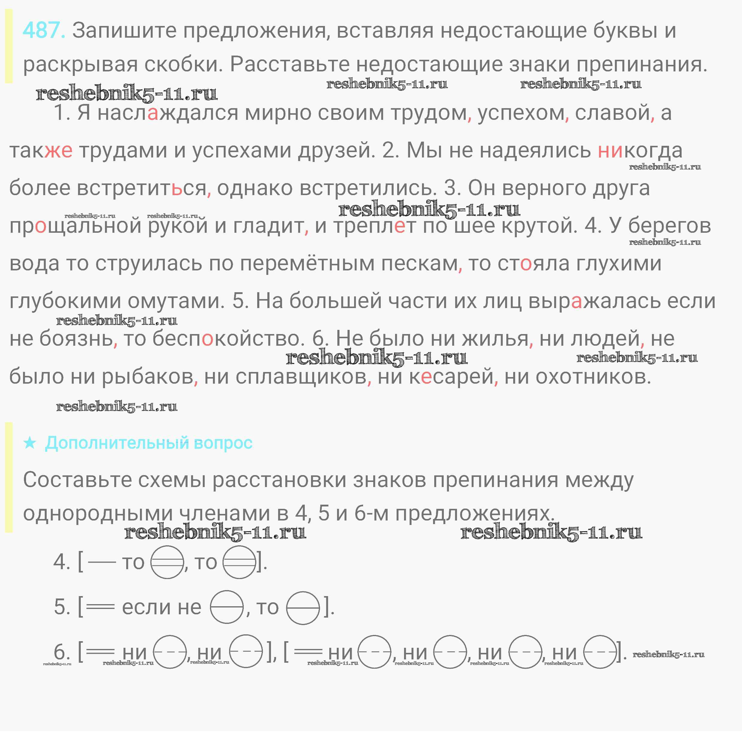 Готовая домашняя работа с ответами по Русскому языку за 8 класс Пичугов, Еремеева, Купалова, Леденева Практика Вертикаль Дрофа 2016 ФГОС - Упражнения 487