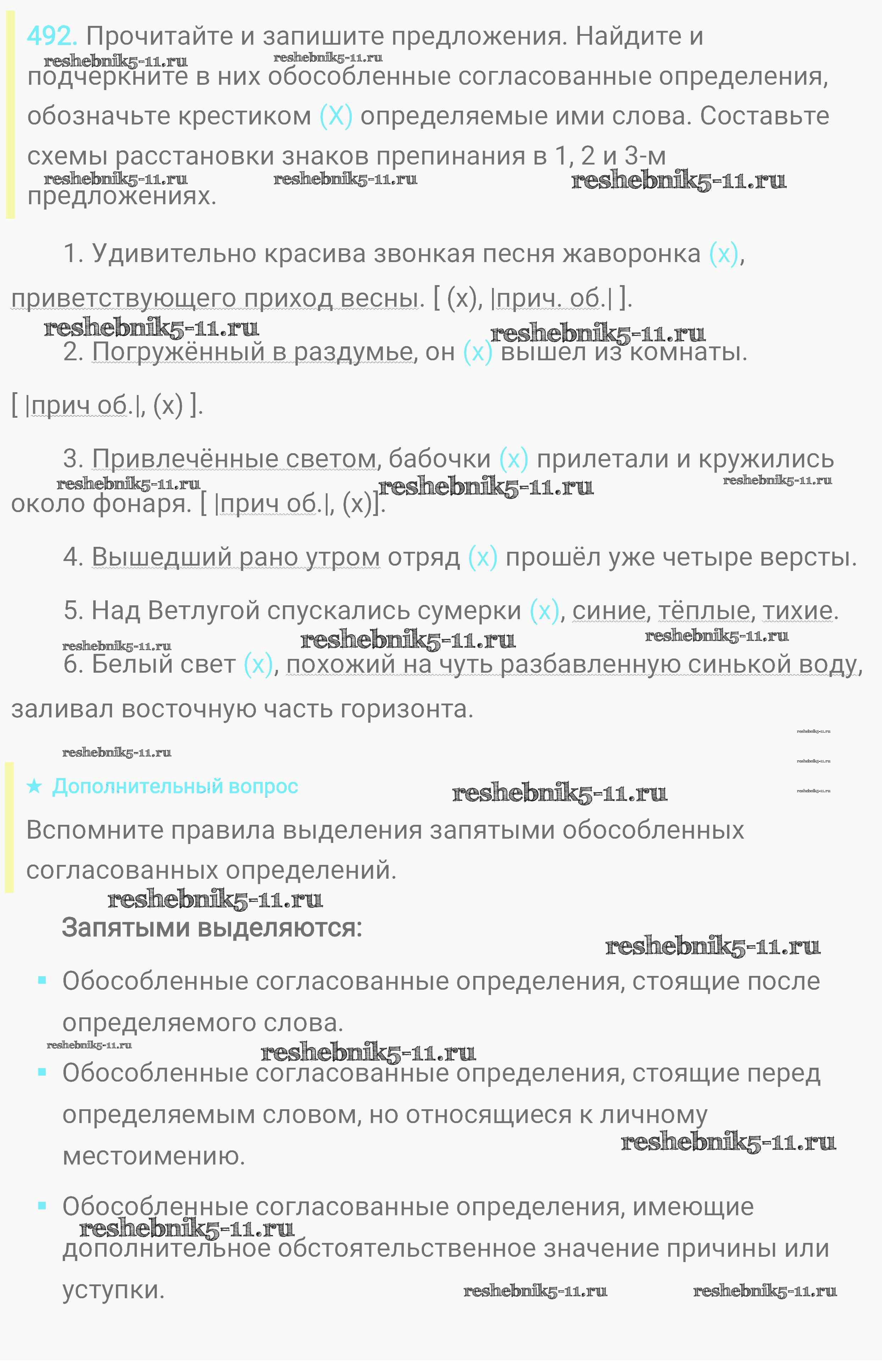 Готовая домашняя работа с ответами по Русскому языку за 8 класс Пичугов, Еремеева, Купалова, Леденева Практика Вертикаль Дрофа 2016 ФГОС - Упражнения 492