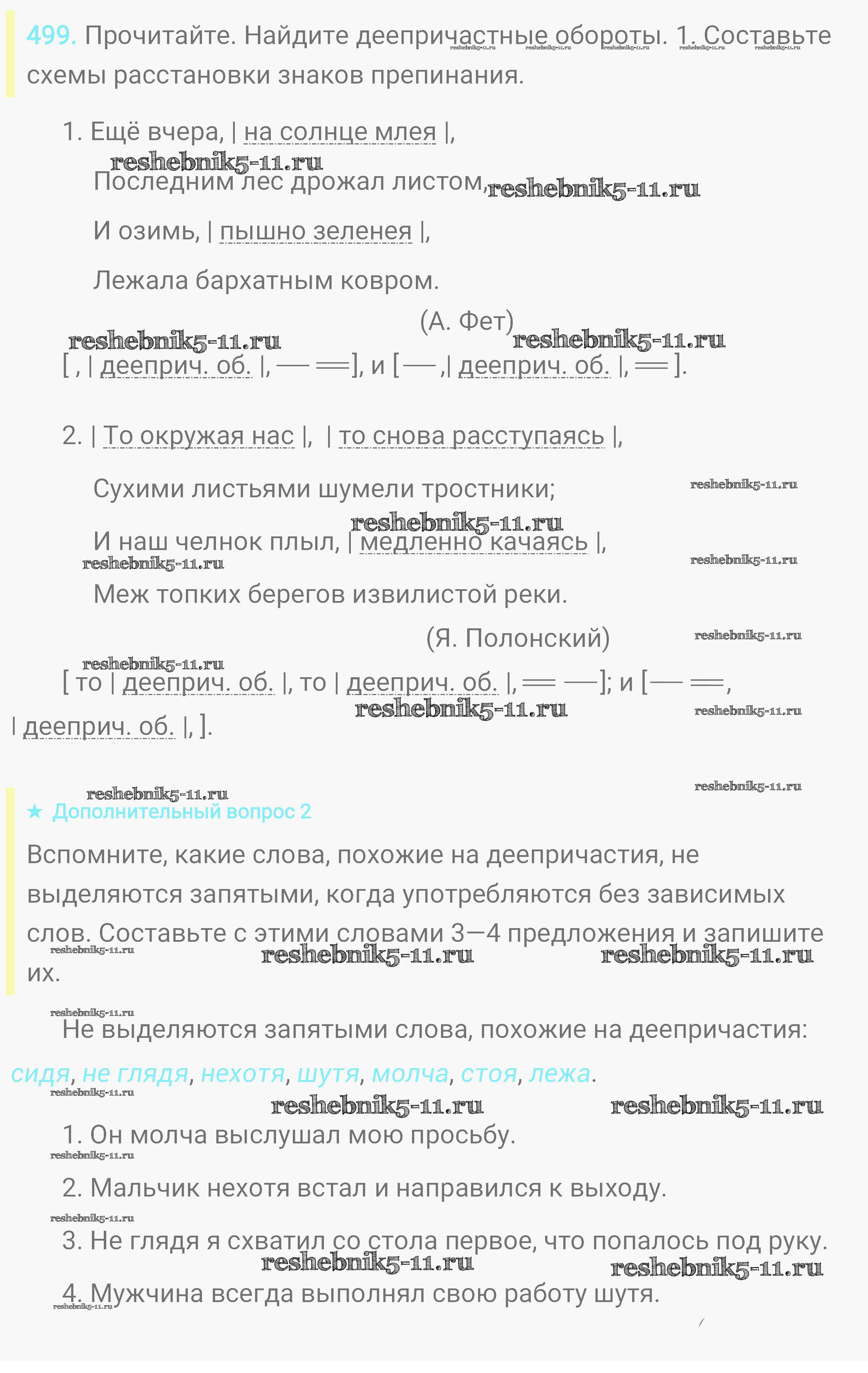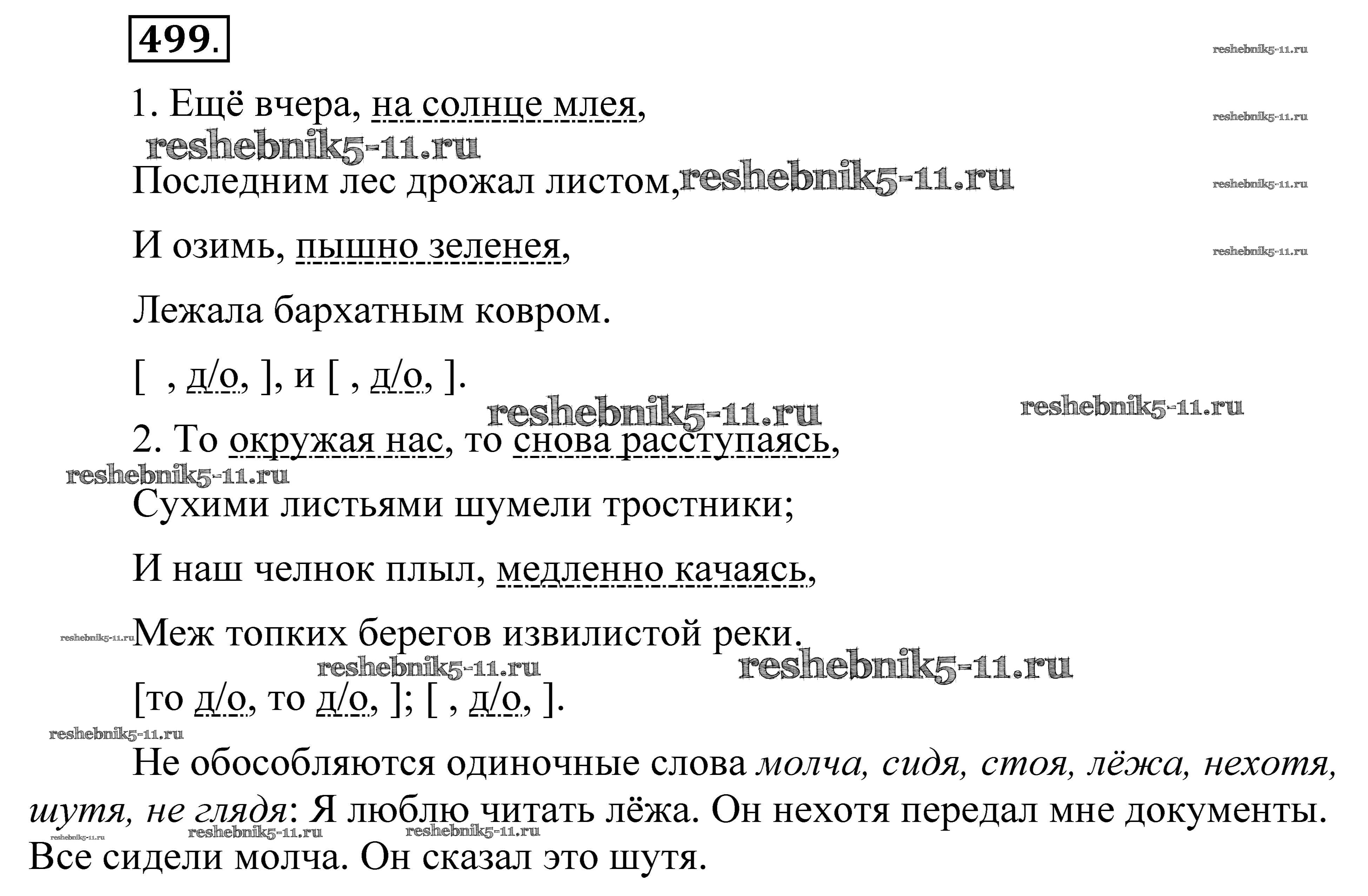 Готовая домашняя работа с ответами по Русскому языку за 8 класс Пичугов, Еремеева, Купалова, Леденева Практика Вертикаль Дрофа 2016 ФГОС - Упражнения 499