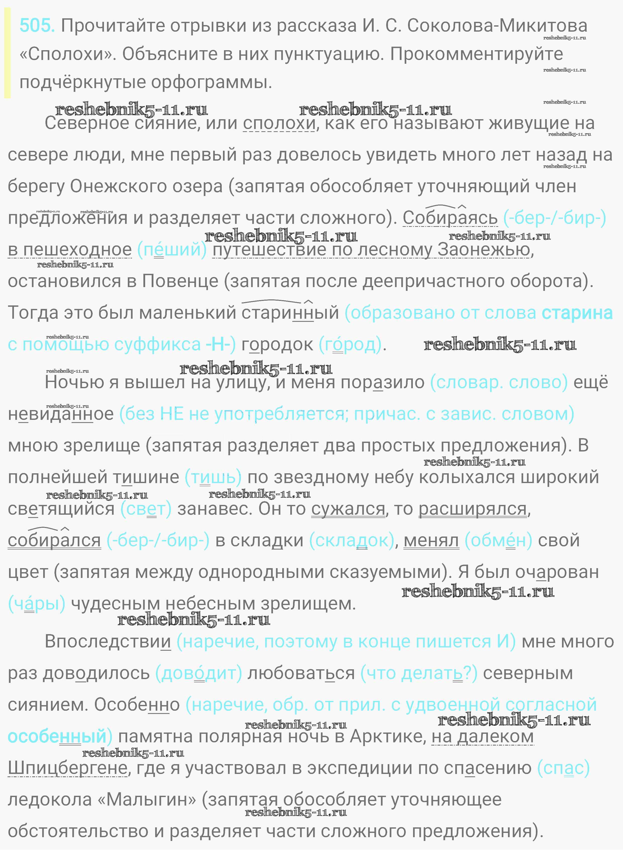 Готовая домашняя работа с ответами по Русскому языку за 8 класс Пичугов, Еремеева, Купалова, Леденева Практика Вертикаль Дрофа 2016 ФГОС - Упражнения 505