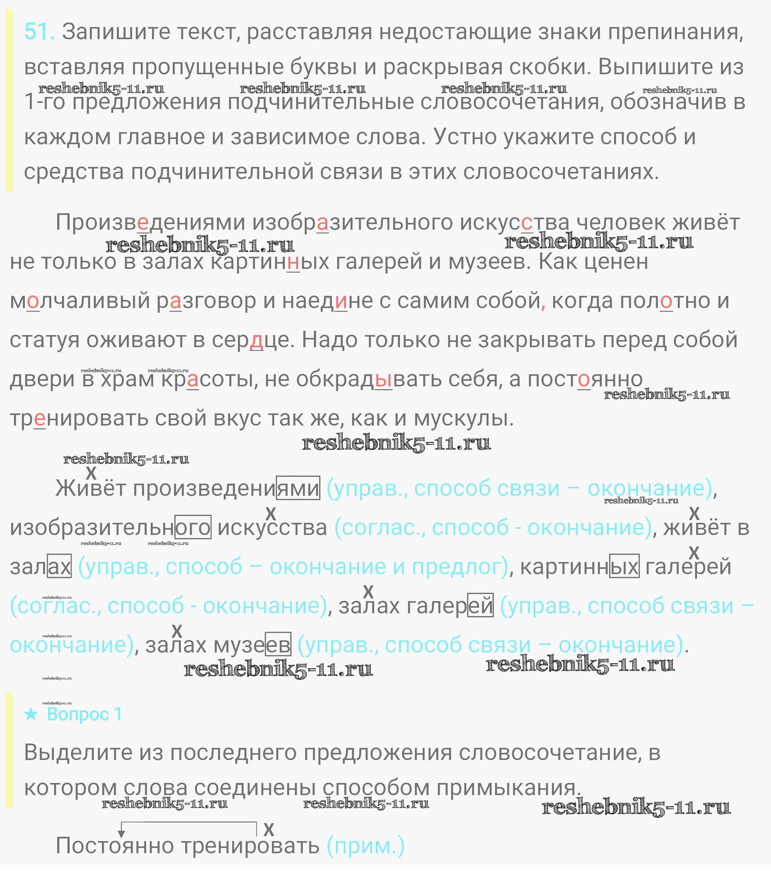 Готовая домашняя работа с ответами по Русскому языку за 8 класс Пичугов, Еремеева, Купалова, Леденева Практика Вертикаль Дрофа 2016 ФГОС - Упражнения 51