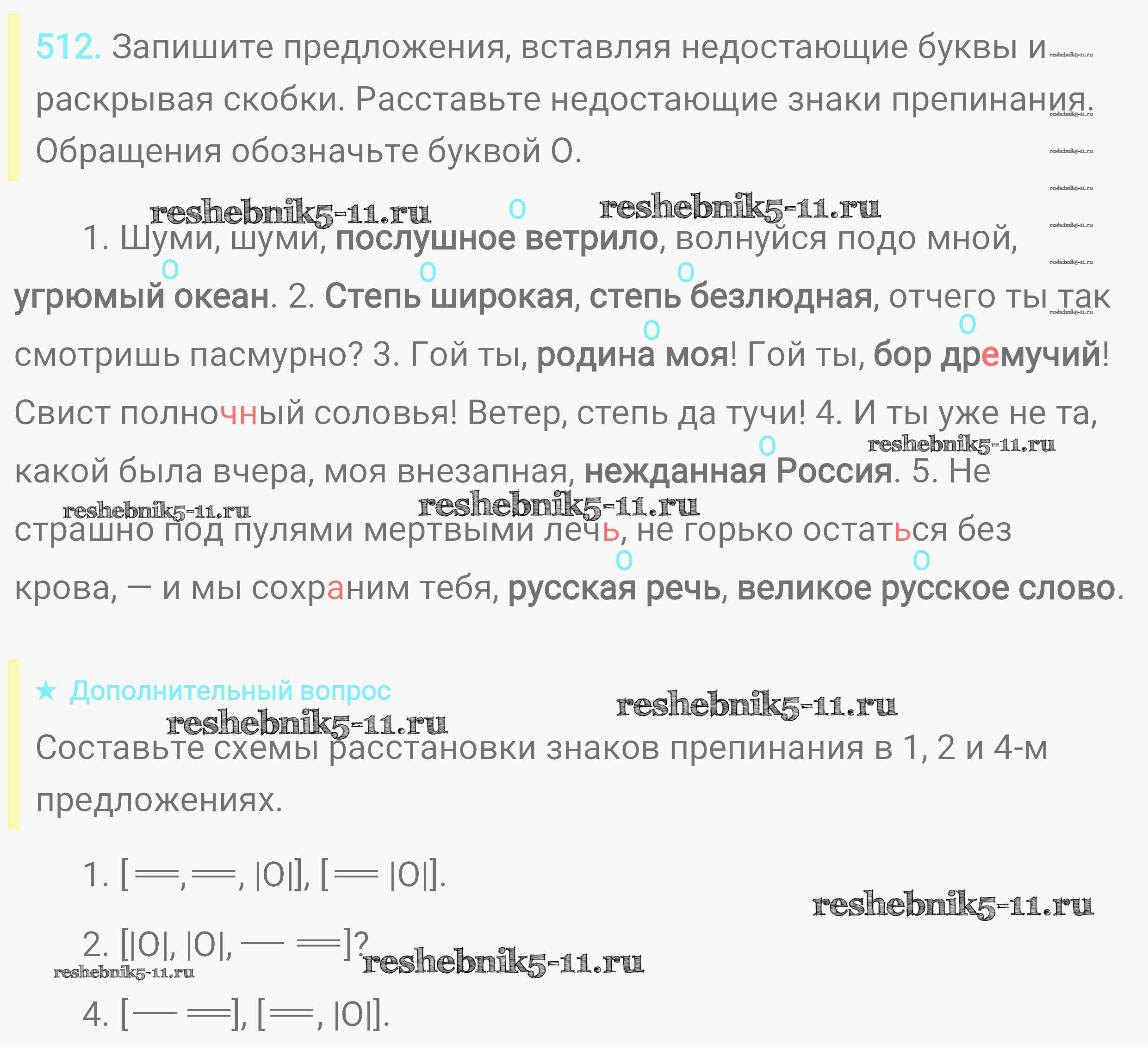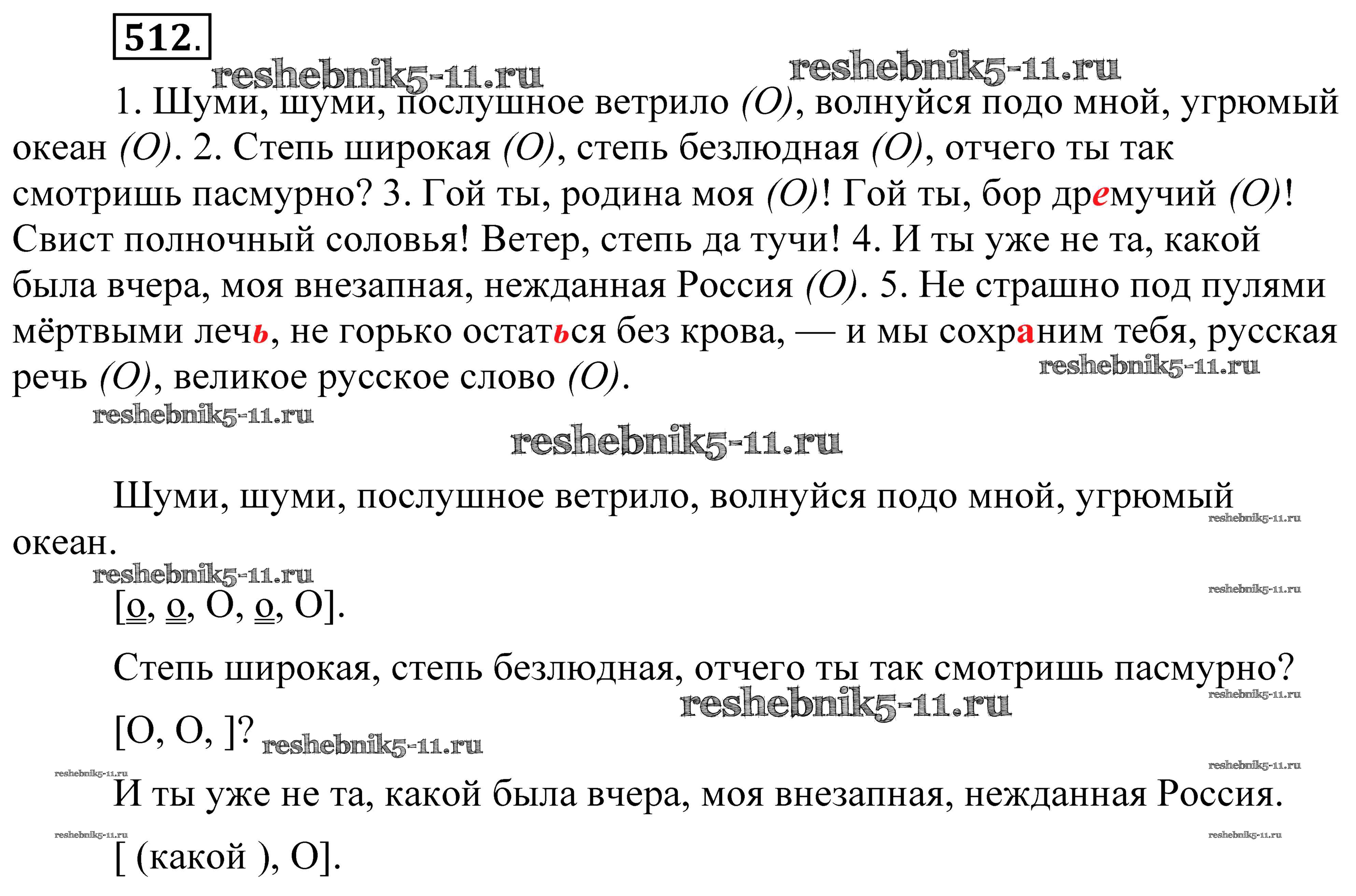 Готовая домашняя работа с ответами по Русскому языку за 8 класс Пичугов, Еремеева, Купалова, Леденева Практика Вертикаль Дрофа 2016 ФГОС - Упражнения 512