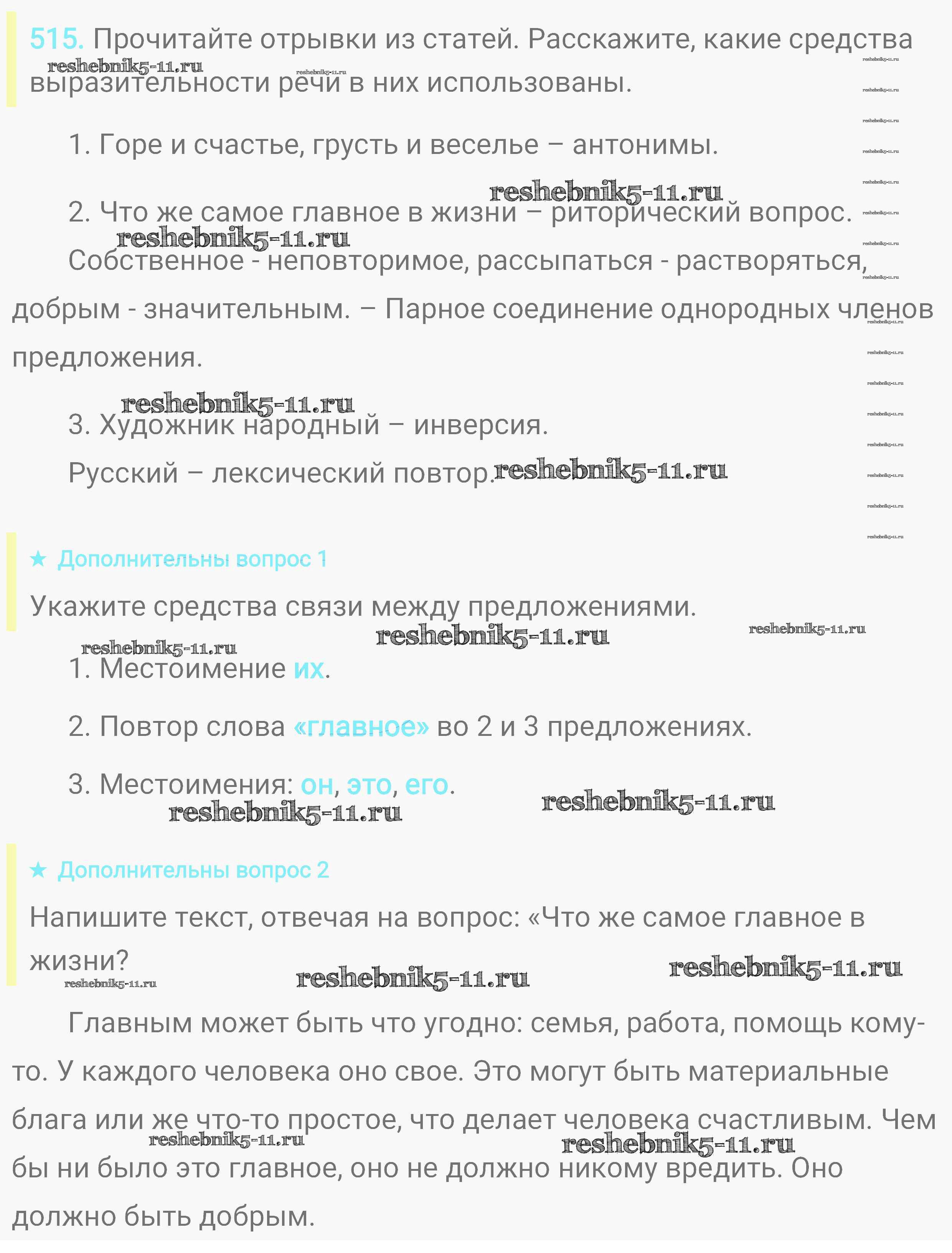 Готовая домашняя работа с ответами по Русскому языку за 8 класс Пичугов, Еремеева, Купалова, Леденева Практика Вертикаль Дрофа 2016 ФГОС - Упражнения 515