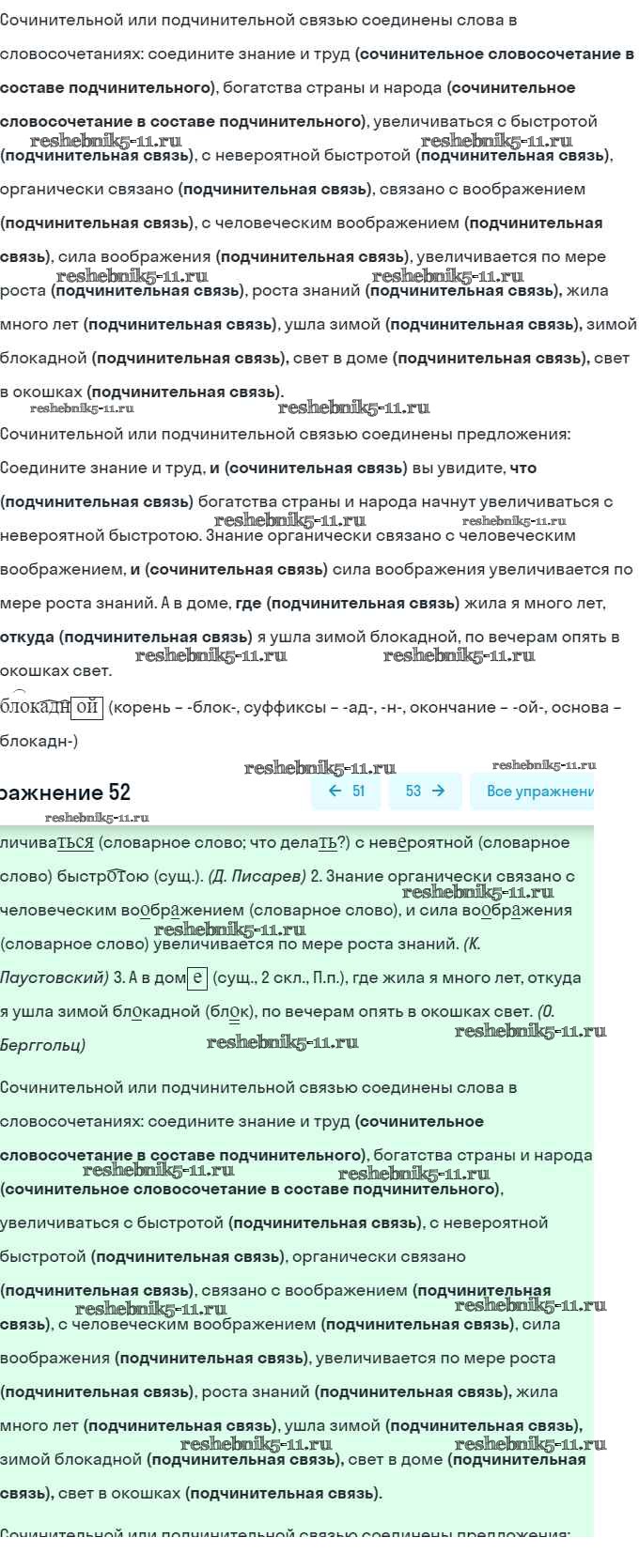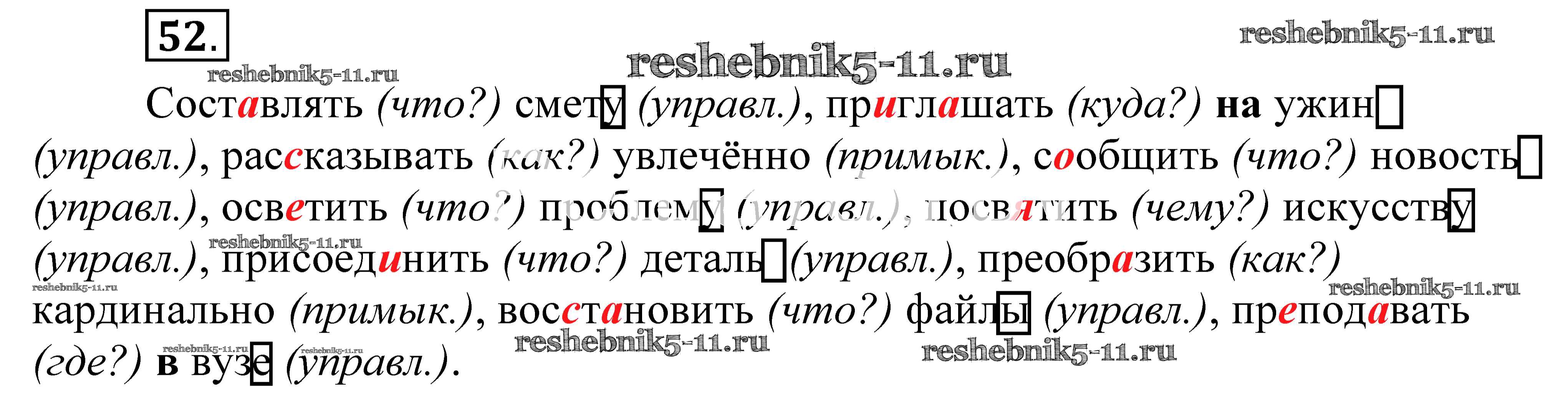 Готовая домашняя работа с ответами по Русскому языку за 8 класс Пичугов, Еремеева, Купалова, Леденева Практика Вертикаль Дрофа 2016 ФГОС - Упражнения 52