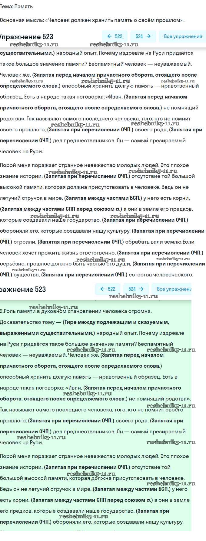 Готовая домашняя работа с ответами по Русскому языку за 8 класс Пичугов, Еремеева, Купалова, Леденева Практика Вертикаль Дрофа 2016 ФГОС - Упражнения 523