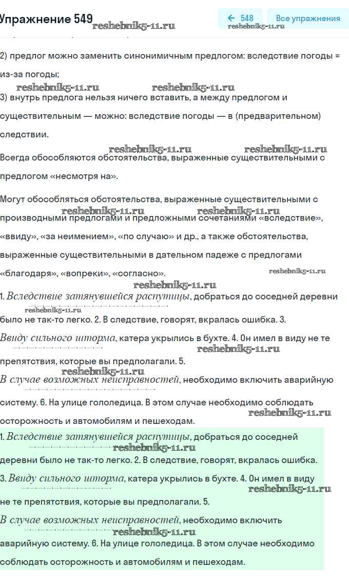 Готовая домашняя работа с ответами по Русскому языку за 8 класс Пичугов, Еремеева, Купалова, Леденева Практика Вертикаль Дрофа 2016 ФГОС - Упражнения 549