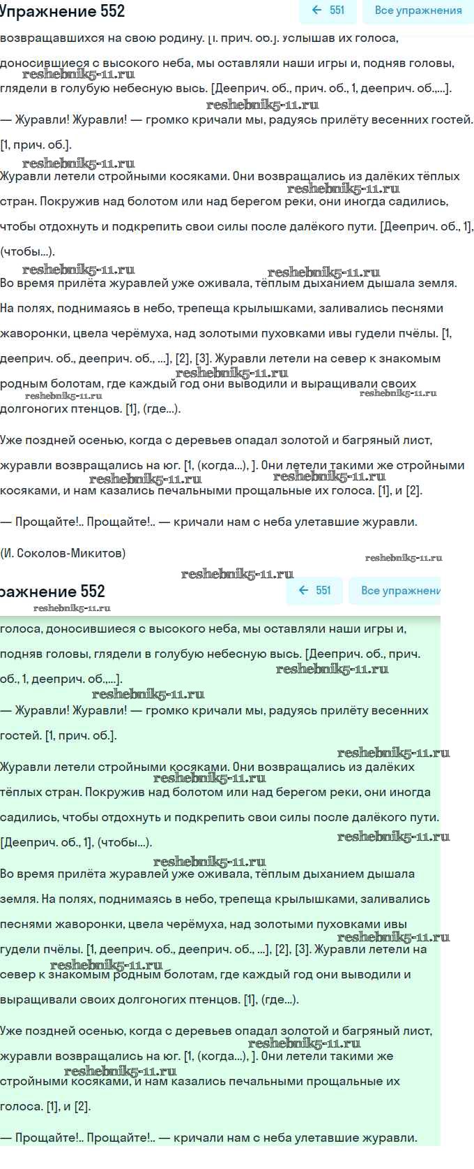 Готовая домашняя работа с ответами по Русскому языку за 8 класс Пичугов, Еремеева, Купалова, Леденева Практика Вертикаль Дрофа 2016 ФГОС - Упражнения 552