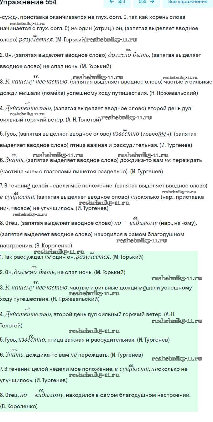 Готовая домашняя работа с ответами по Русскому языку за 8 класс Пичугов, Еремеева, Купалова, Леденева Практика Вертикаль Дрофа 2016 ФГОС - Упражнения 554