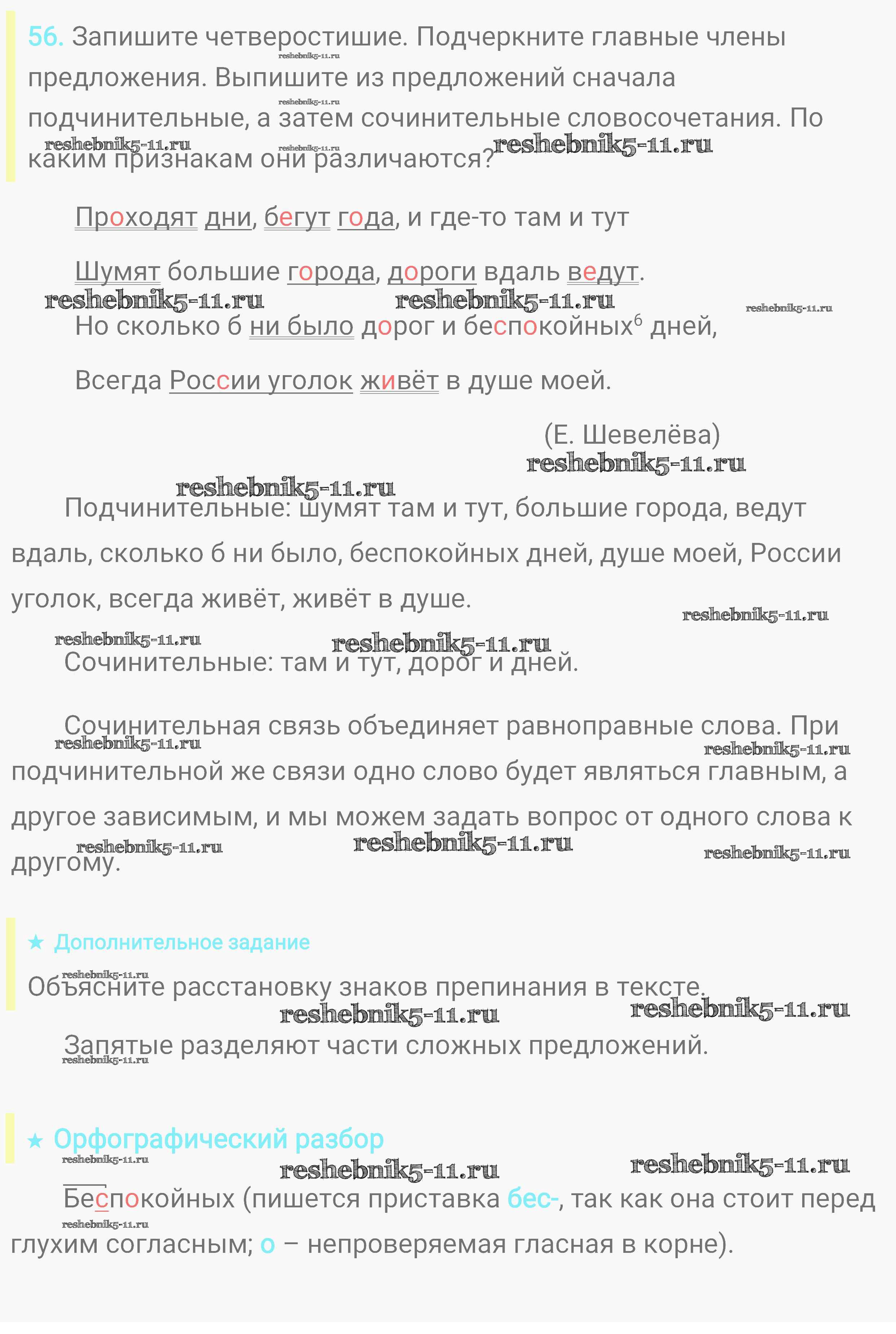 Готовая домашняя работа с ответами по Русскому языку за 8 класс Пичугов, Еремеева, Купалова, Леденева Практика Вертикаль Дрофа 2016 ФГОС - Упражнения 56