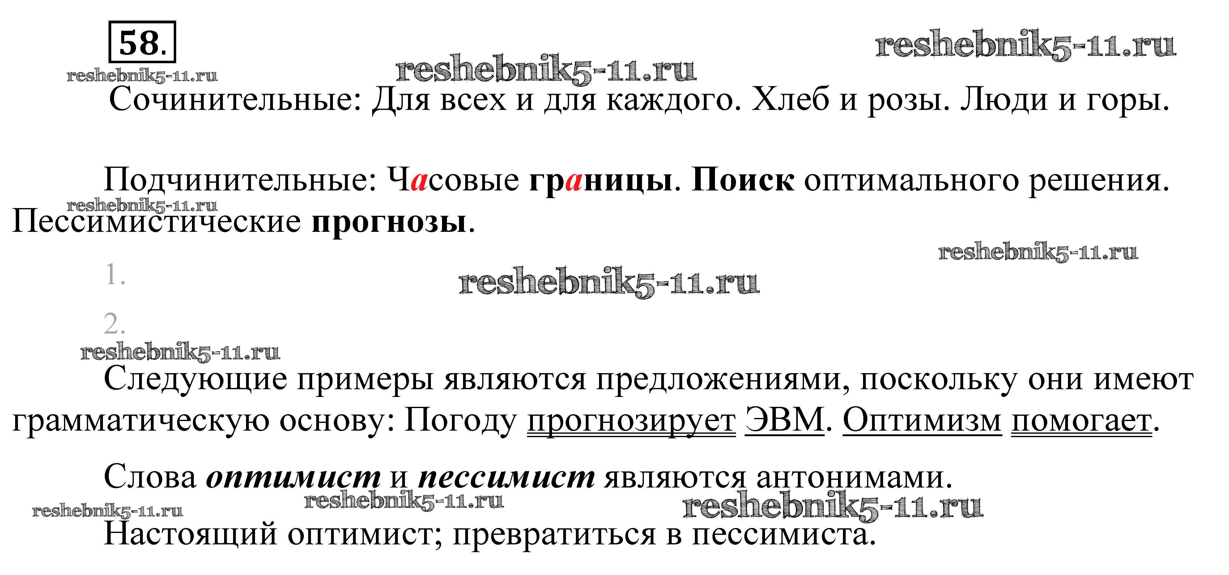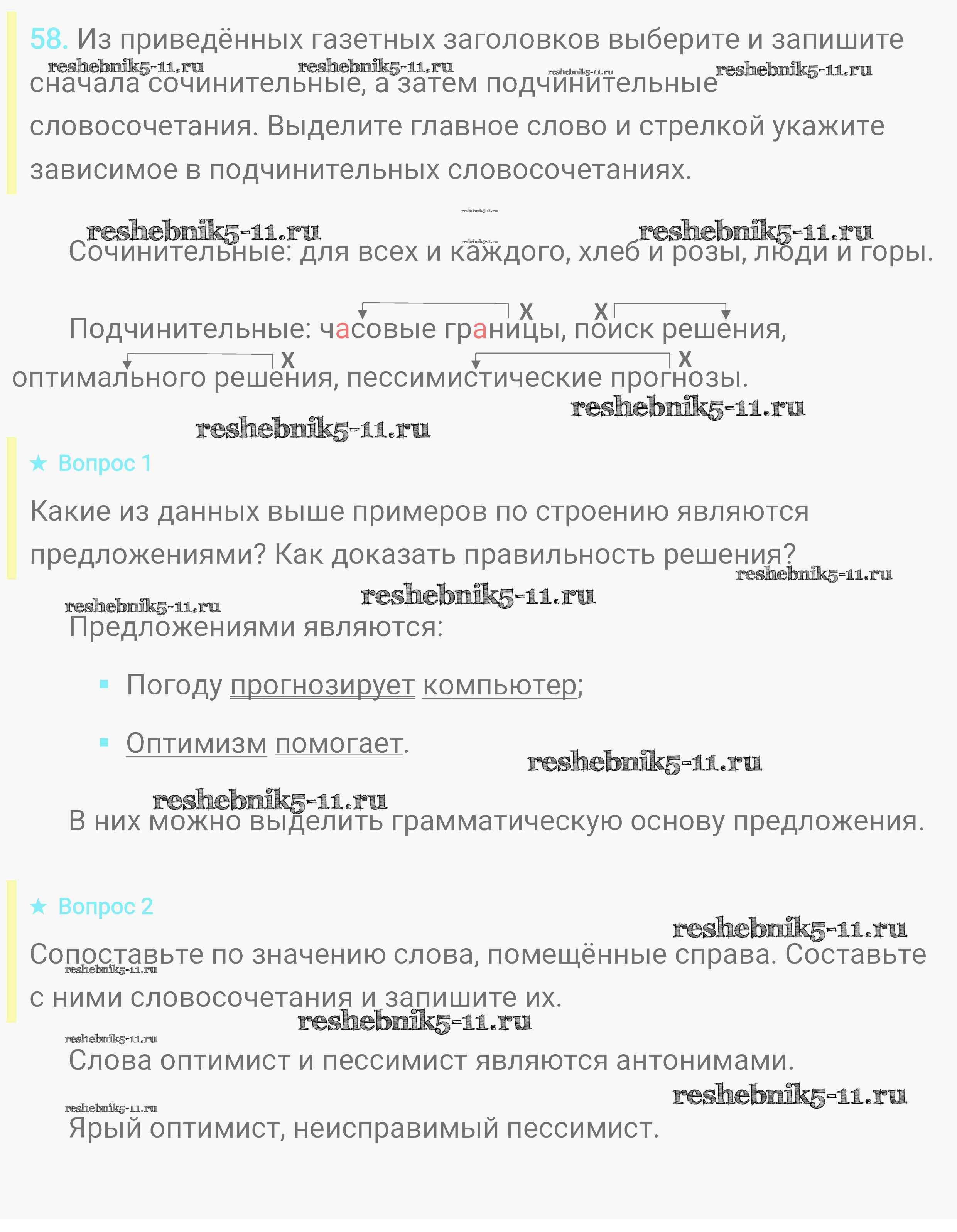 Готовая домашняя работа с ответами по Русскому языку за 8 класс Пичугов, Еремеева, Купалова, Леденева Практика Вертикаль Дрофа 2016 ФГОС - Упражнения 58