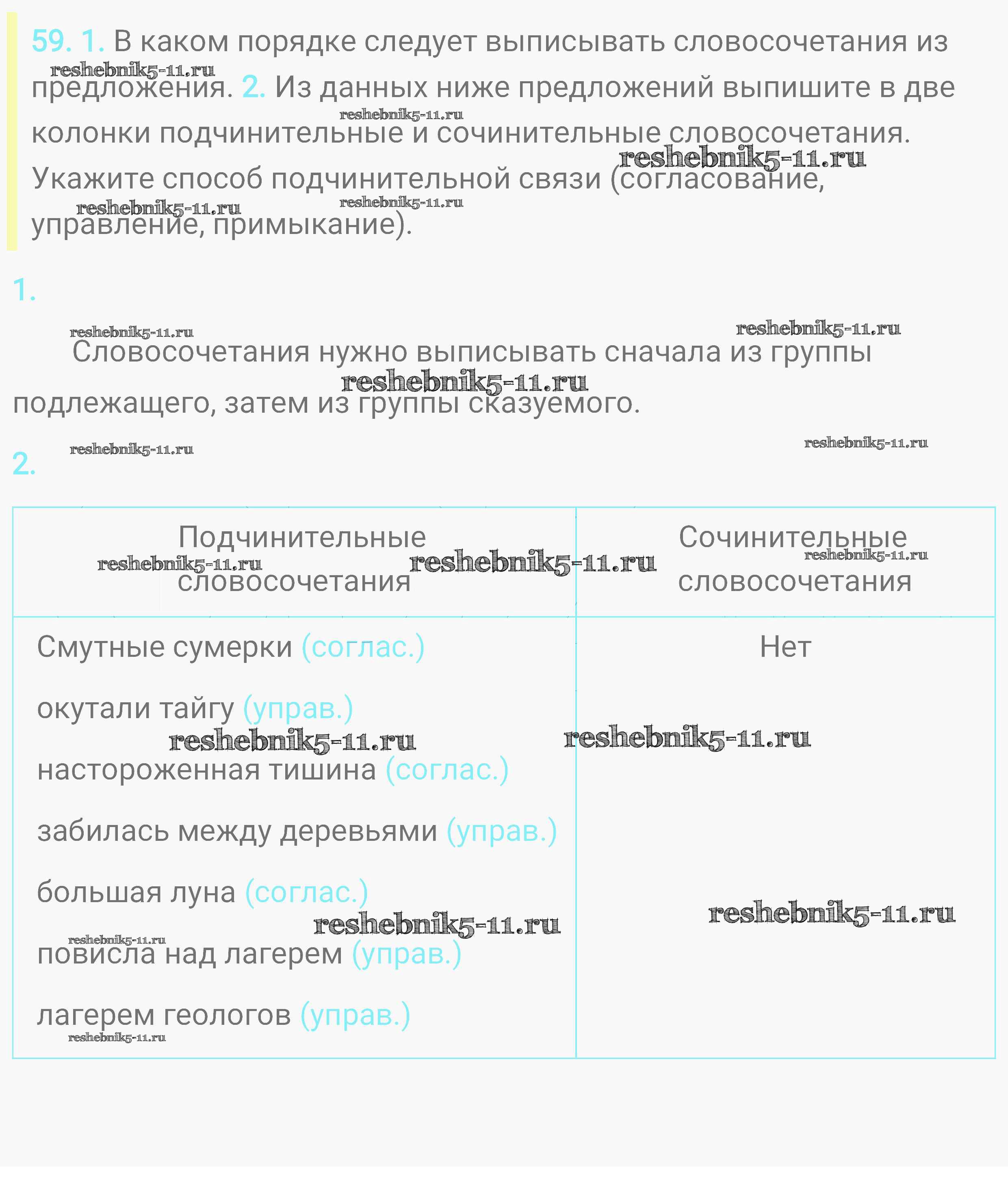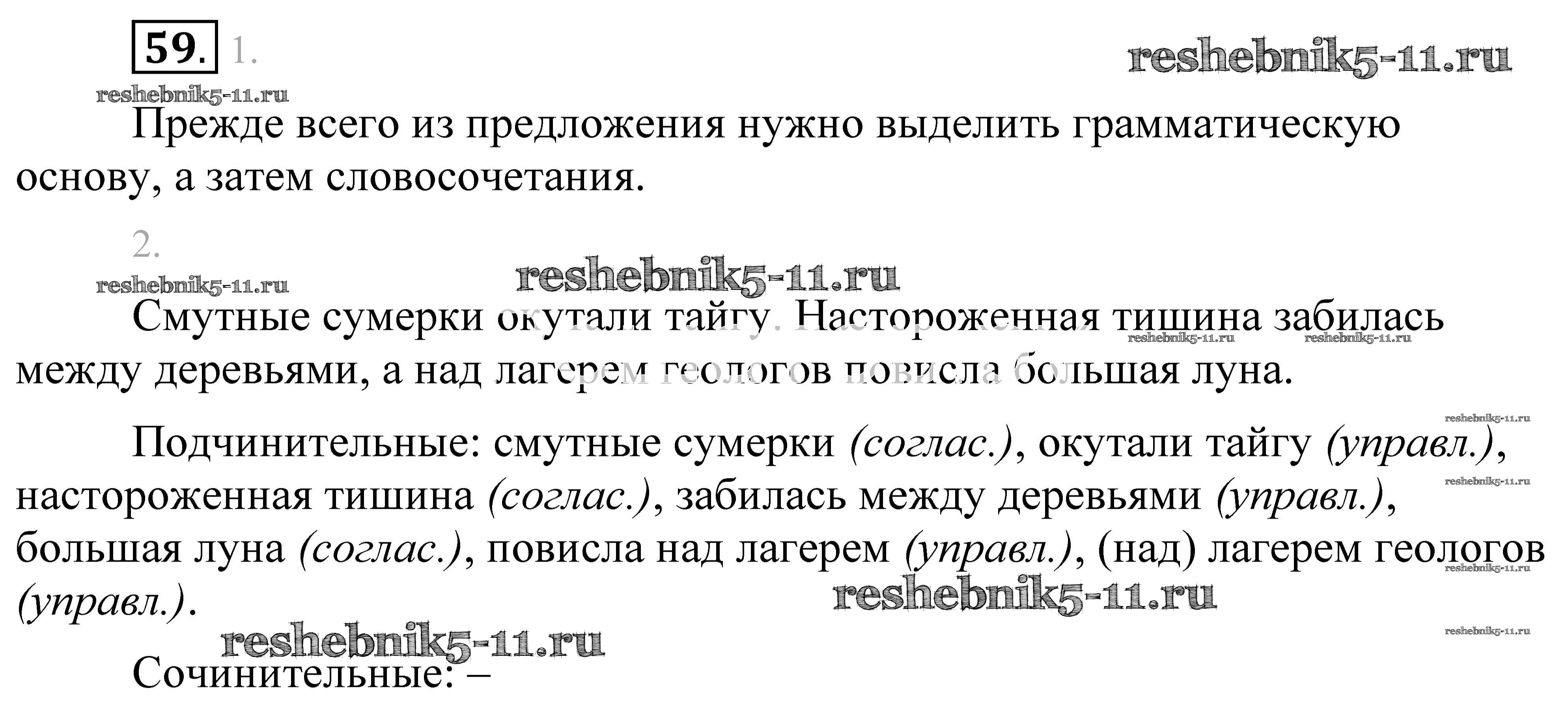 Готовая домашняя работа с ответами по Русскому языку за 8 класс Пичугов, Еремеева, Купалова, Леденева Практика Вертикаль Дрофа 2016 ФГОС - Упражнения 59