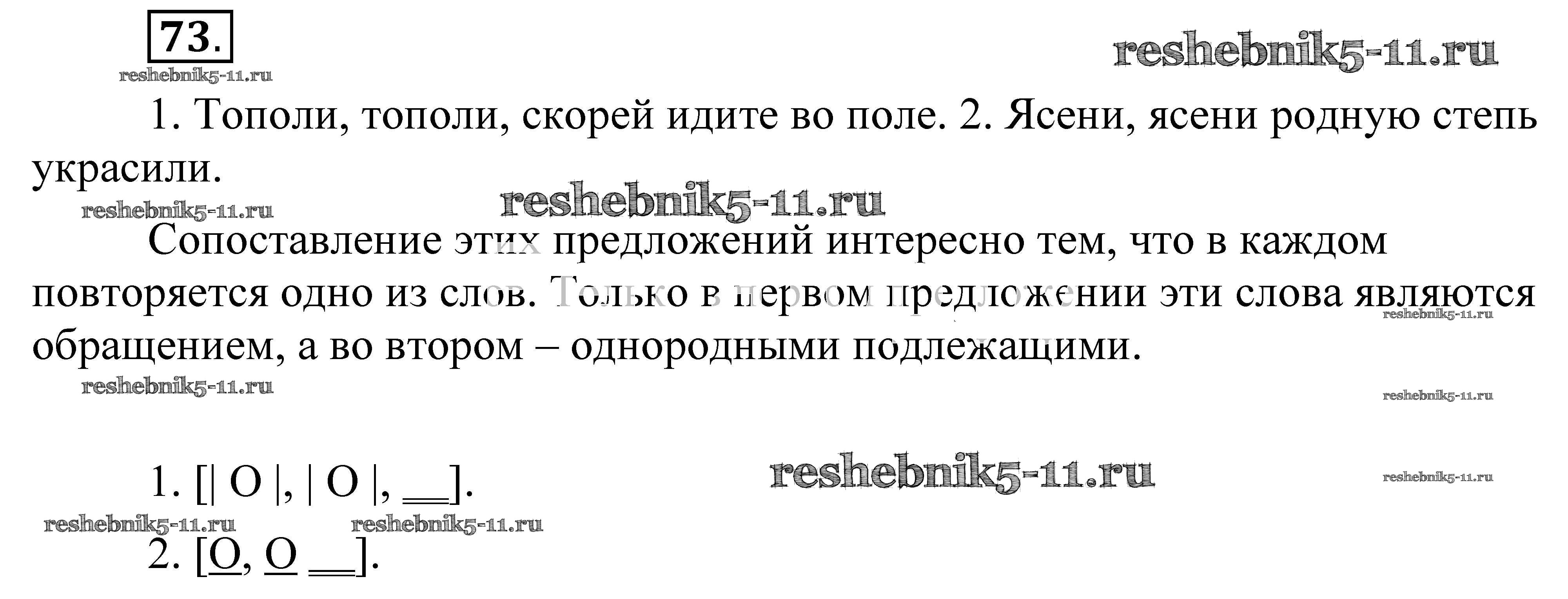 Готовая домашняя работа с ответами по Русскому языку за 8 класс Пичугов, Еремеева, Купалова, Леденева Практика Вертикаль Дрофа 2016 ФГОС - Упражнения 73