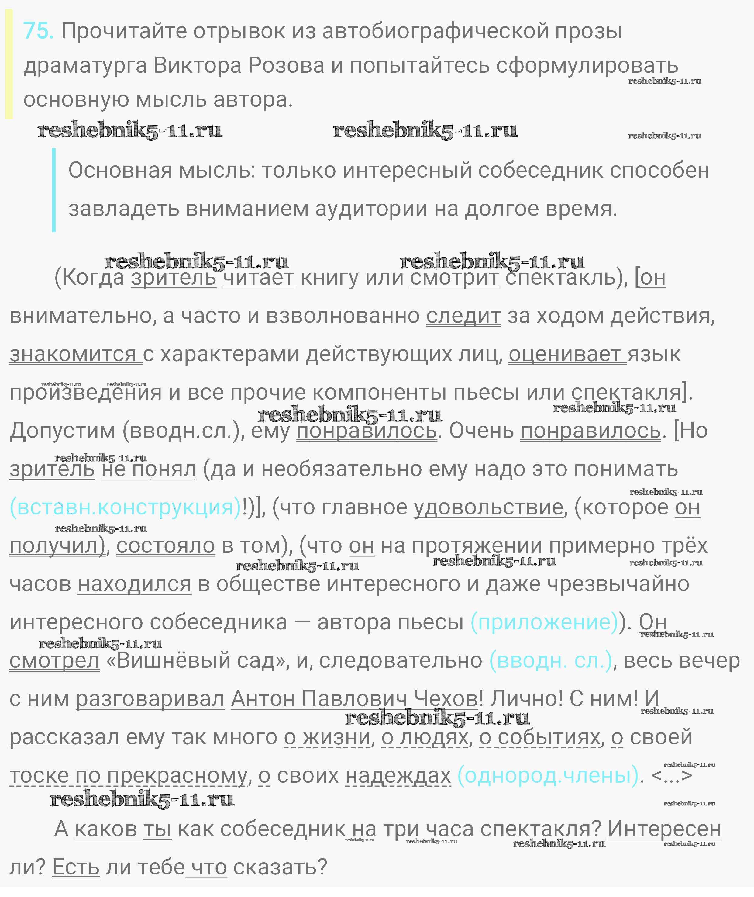 Готовая домашняя работа с ответами по Русскому языку за 8 класс Пичугов, Еремеева, Купалова, Леденева Практика Вертикаль Дрофа 2016 ФГОС - Упражнения 75
