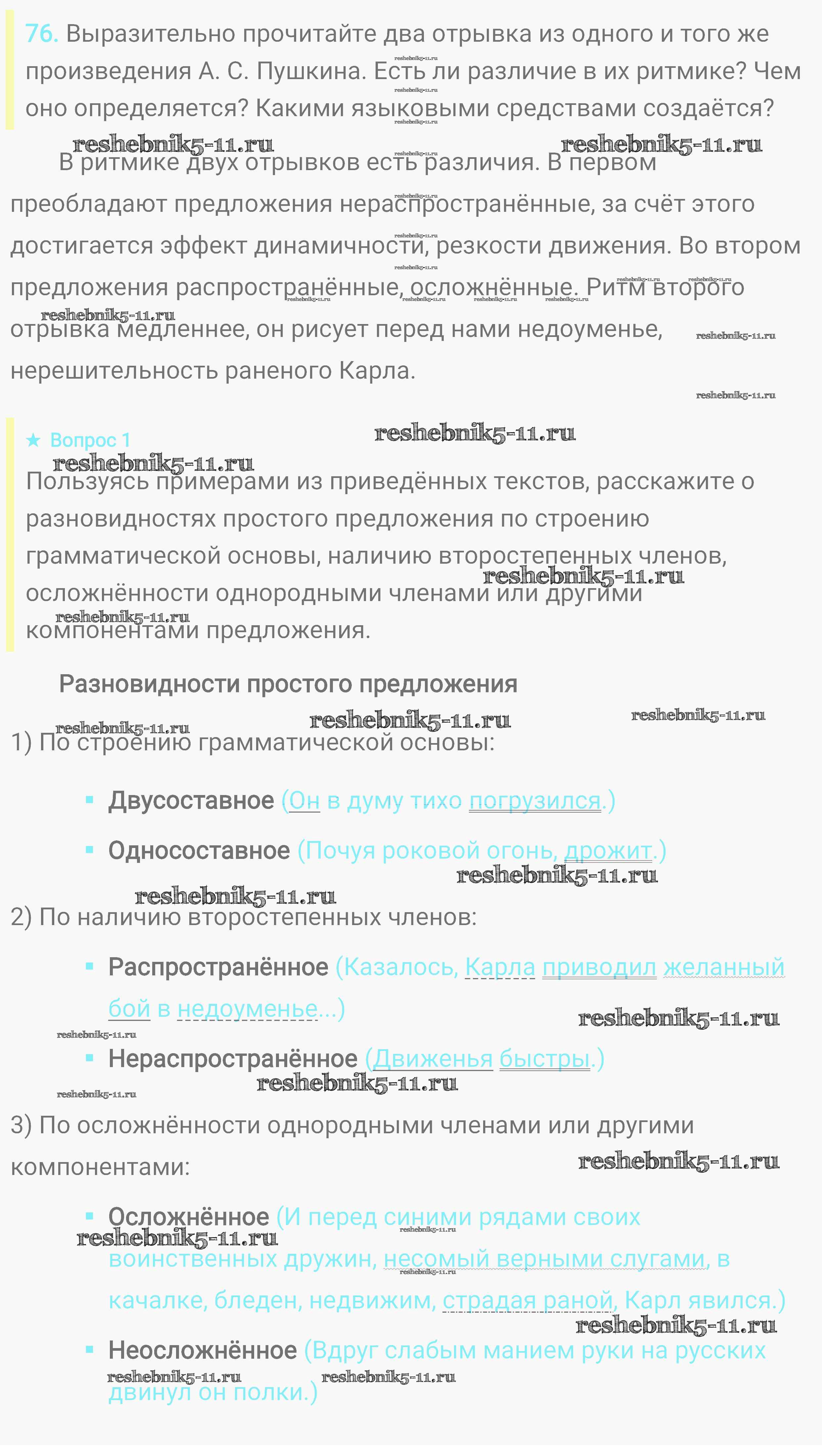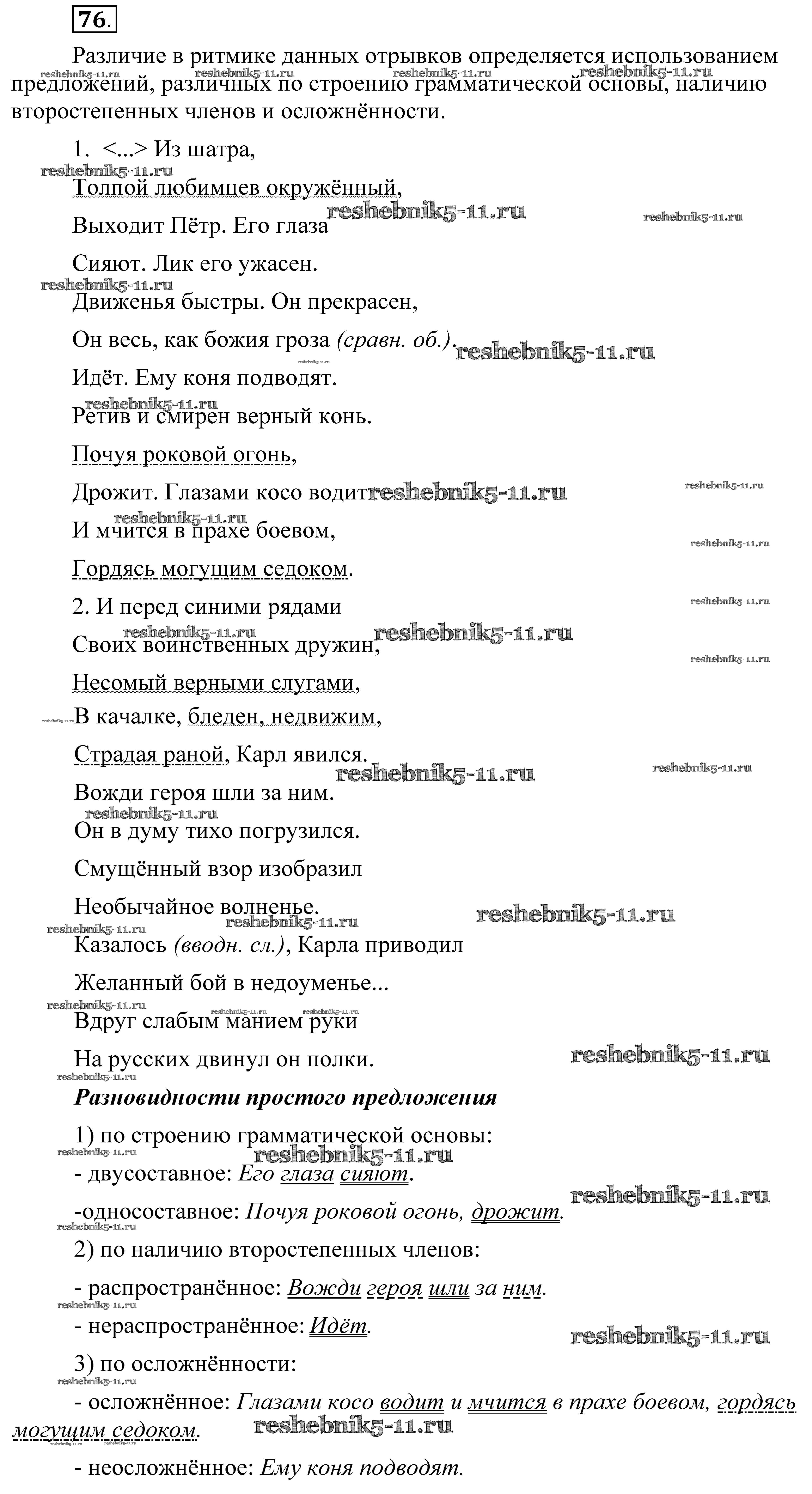 Готовая домашняя работа с ответами по Русскому языку за 8 класс Пичугов, Еремеева, Купалова, Леденева Практика Вертикаль Дрофа 2016 ФГОС - Упражнения 76