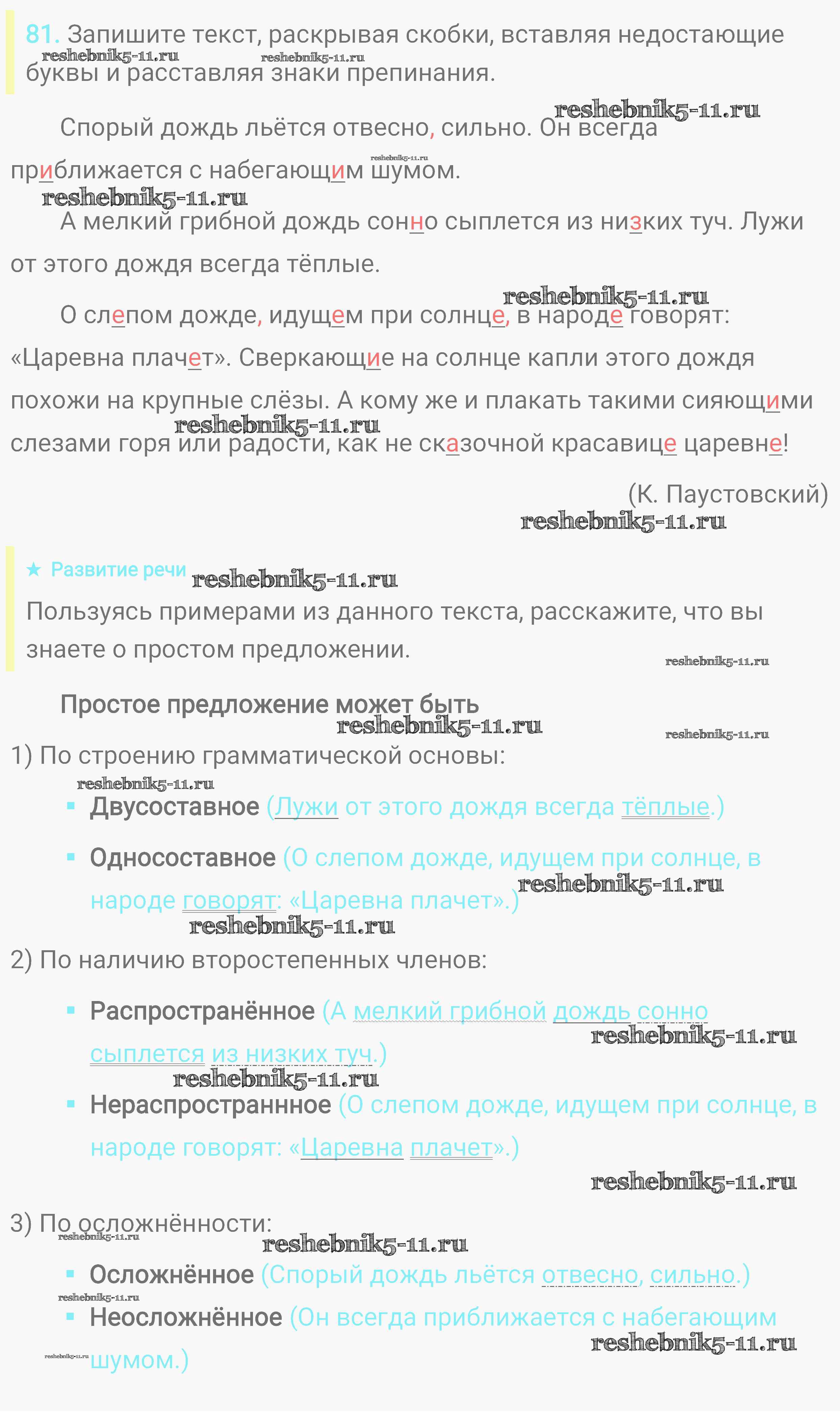 Готовая домашняя работа с ответами по Русскому языку за 8 класс Пичугов, Еремеева, Купалова, Леденева Практика Вертикаль Дрофа 2016 ФГОС - Упражнения 81