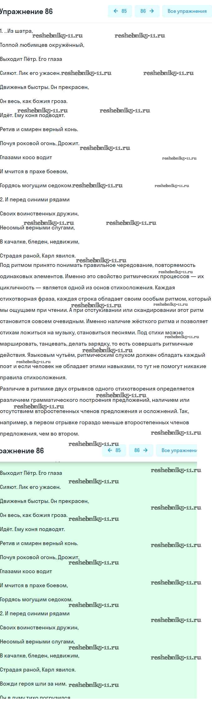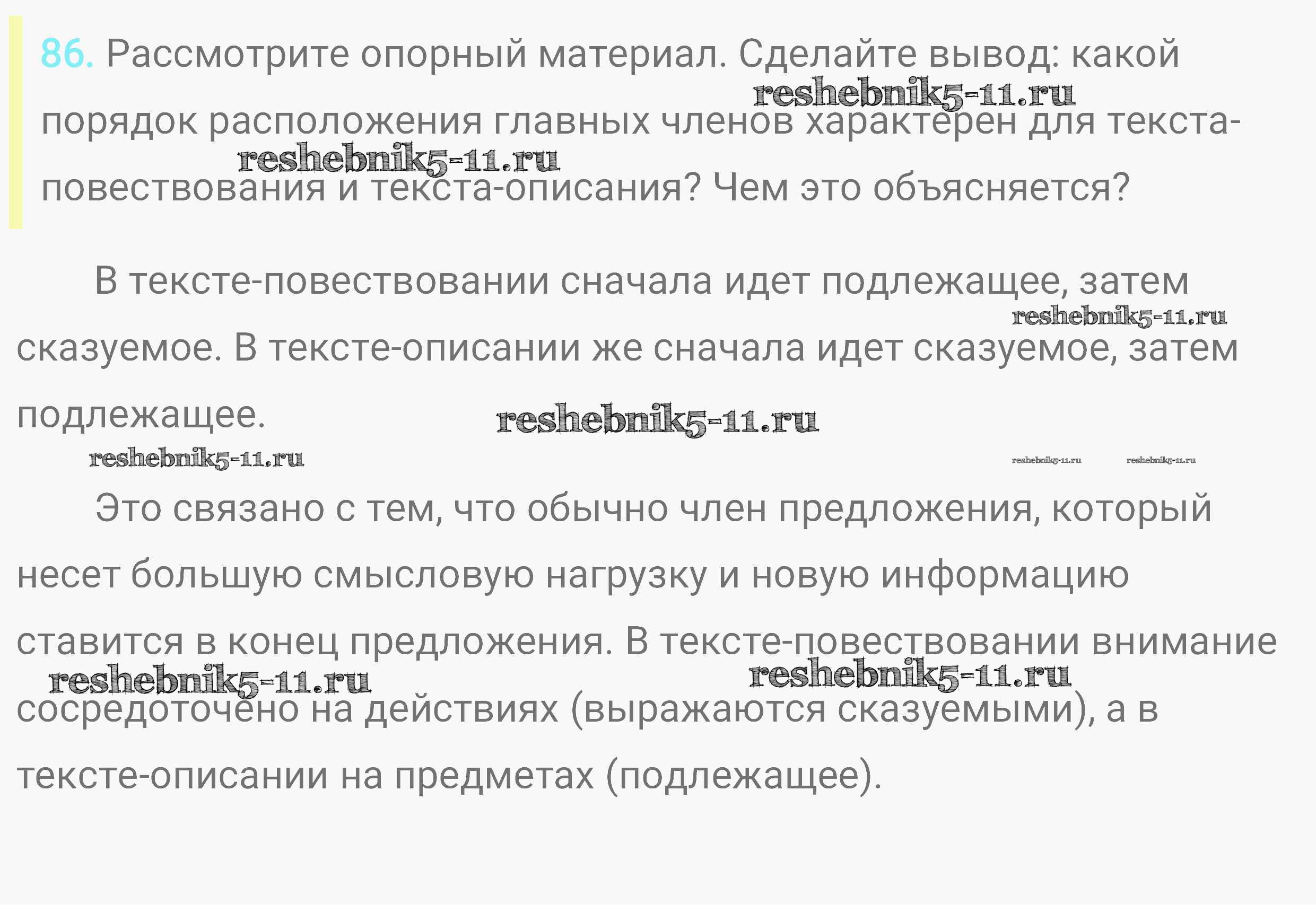 Готовая домашняя работа с ответами по Русскому языку за 8 класс Пичугов, Еремеева, Купалова, Леденева Практика Вертикаль Дрофа 2016 ФГОС - Упражнения 86