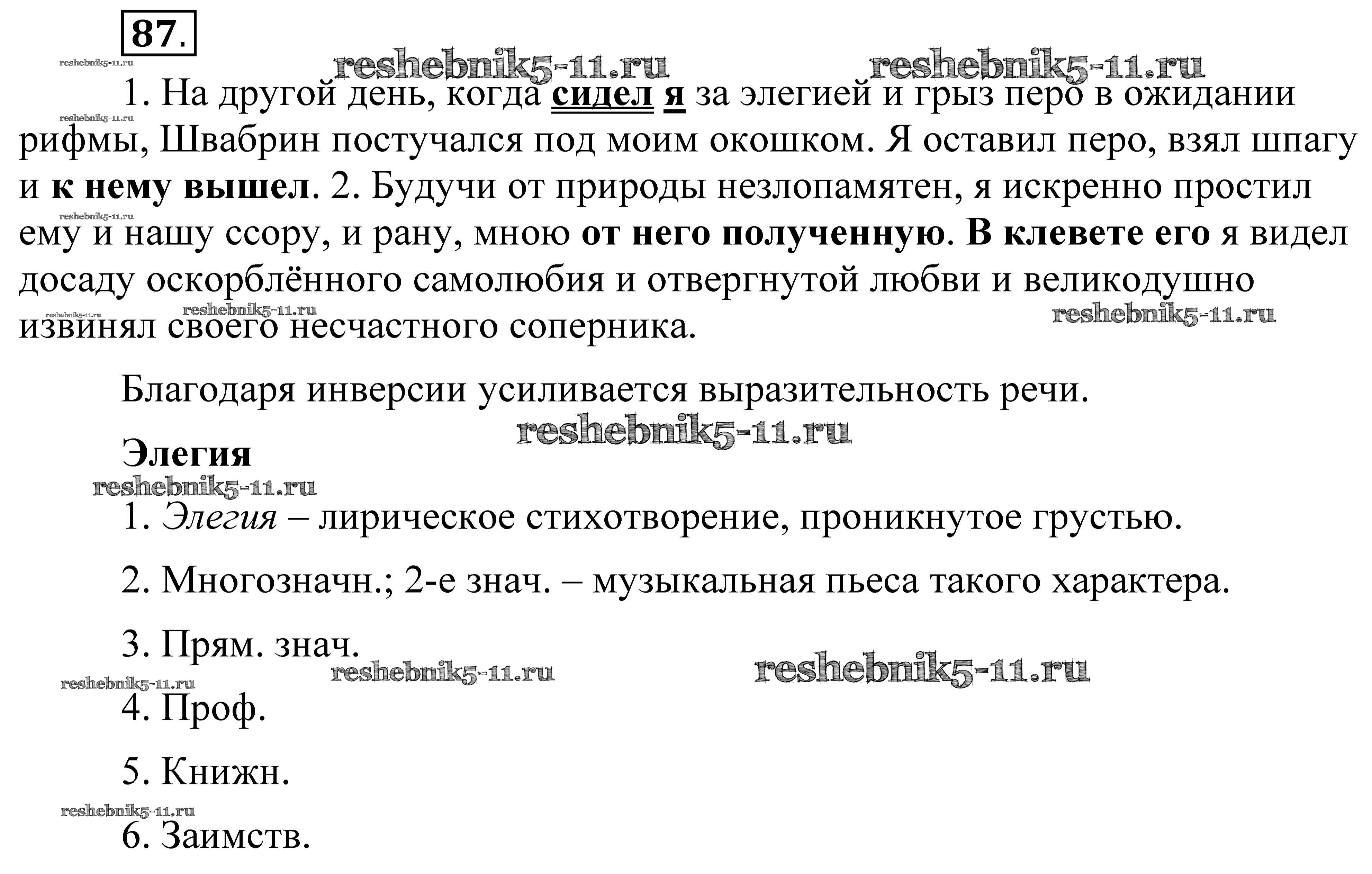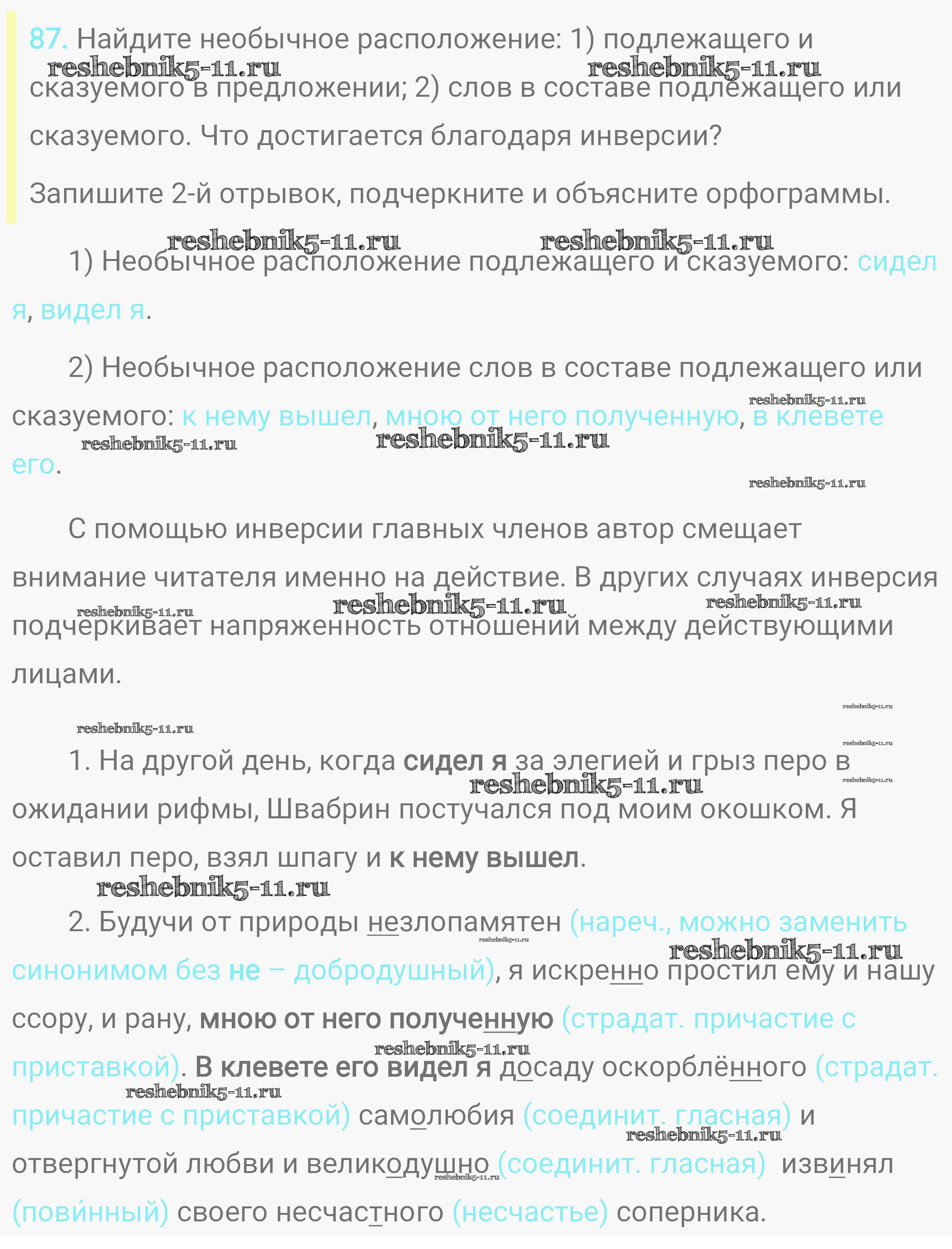 Готовая домашняя работа с ответами по Русскому языку за 8 класс Пичугов, Еремеева, Купалова, Леденева Практика Вертикаль Дрофа 2016 ФГОС - Упражнения 87