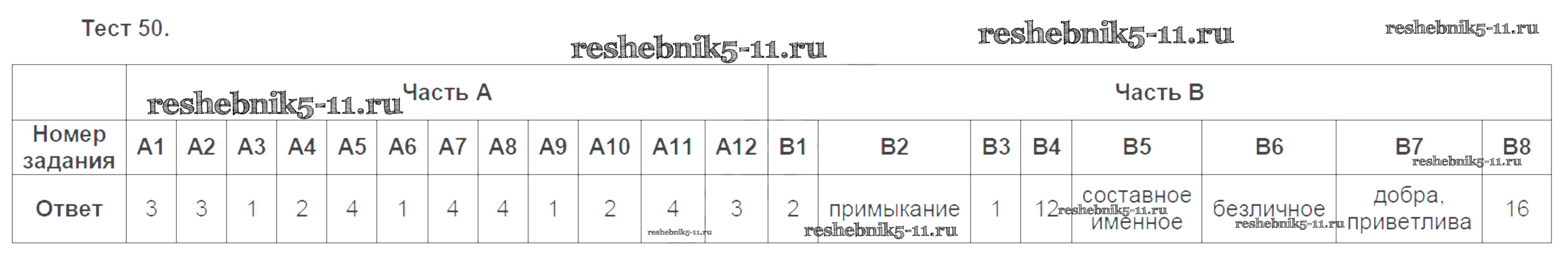 Готовая домашняя работа с ответами по Русскому языку за 8 класс Груздева Тесты УМК Экзамен 2015 ФГОС - Тесты №50
