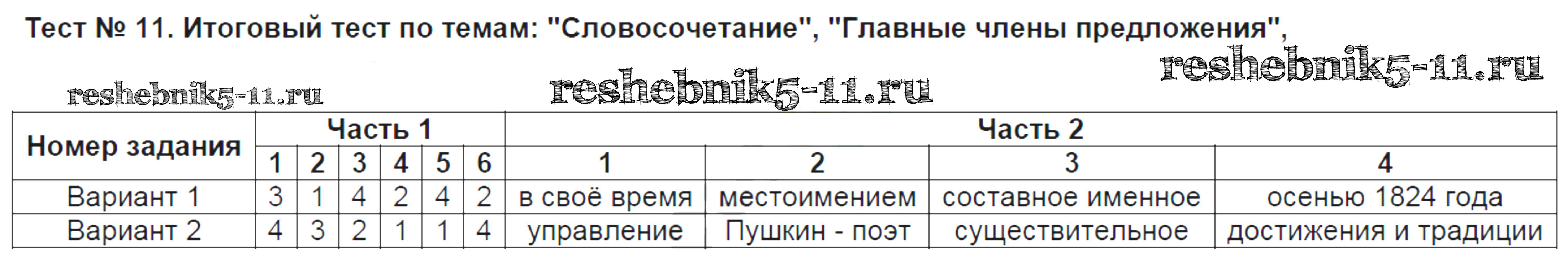 Готовая домашняя работа с ответами по Русскому языку за 8 класс Никулина Контрольно-измерительные материалы (КИМ) Экзамен 2015 ФГОС - Тесты 11
