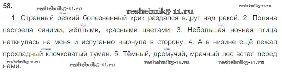 Готовая домашняя работа с ответами по Русскому языку за 8 класс Ефремова Рабочая тетрадь Просвещение 2018 ФГОС - Упражнения 58
