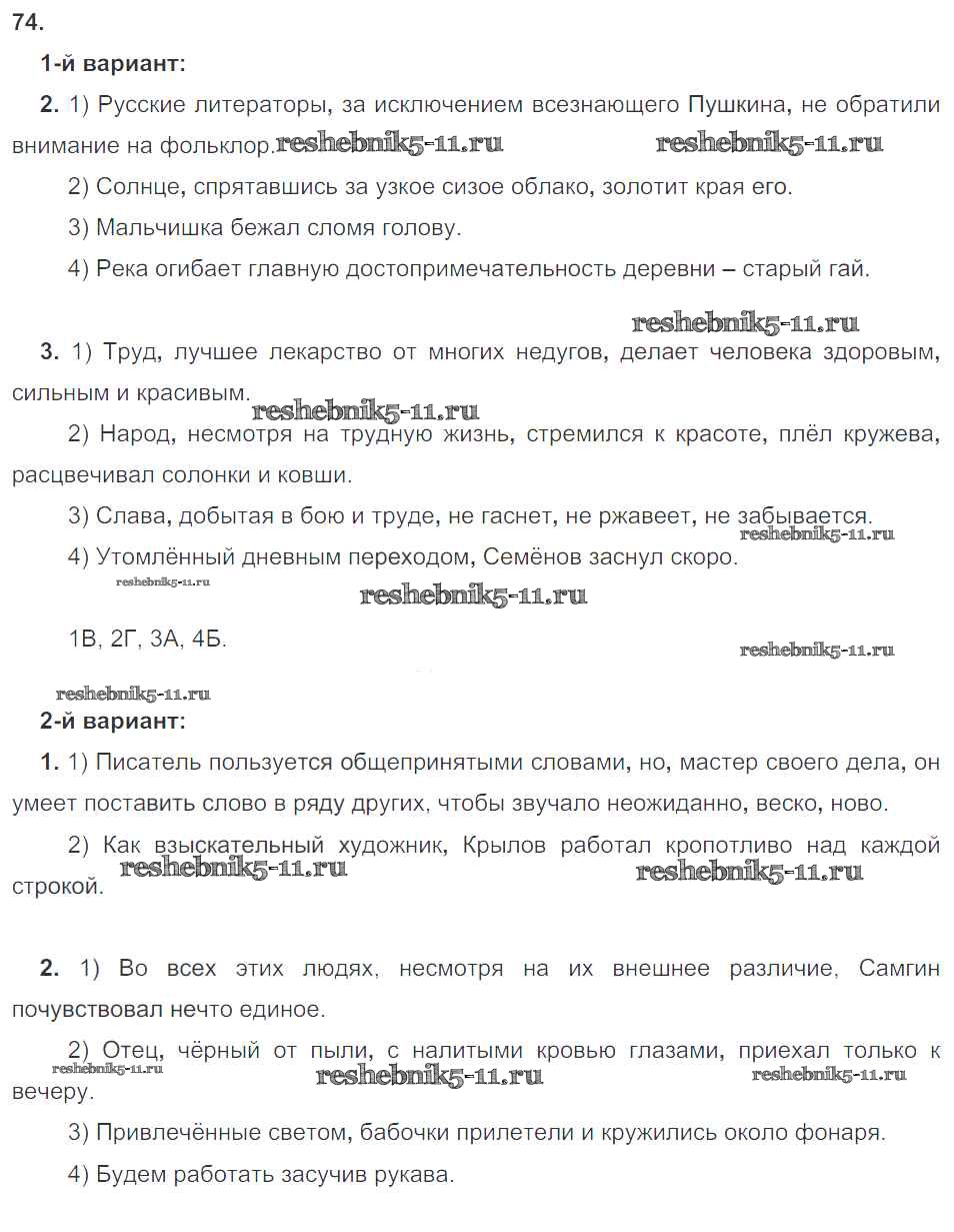 Готовая домашняя работа с ответами по Русскому языку за 8 класс Ефремова Рабочая тетрадь Просвещение 2018 ФГОС - Упражнения 74