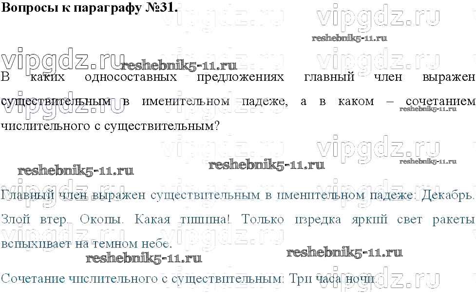 Готовая домашняя работа с ответами по Русскому языку за 8 класс Тростенцова, Ладыженская, Дейкина, Александрова Учебник Просвещение 2014 ФГОС - Вопросы к параграфам §31