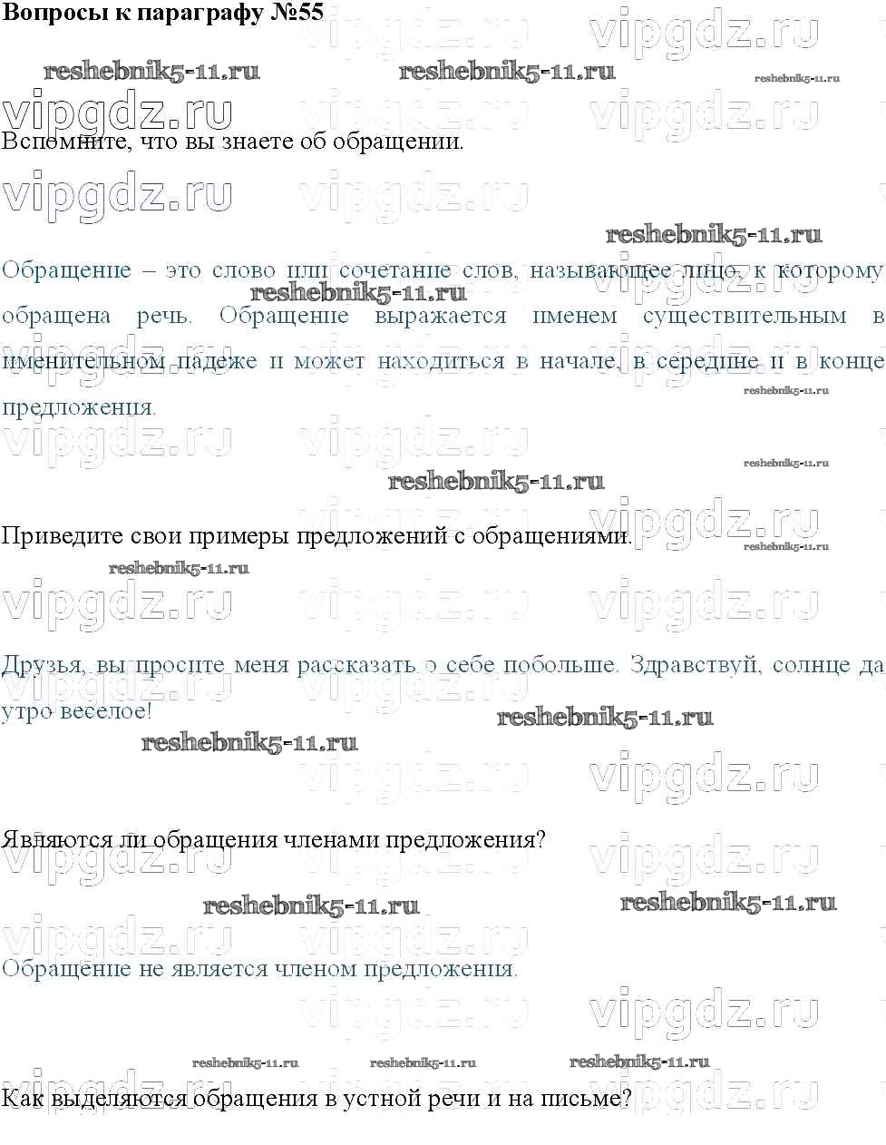 Русский язык за 8 класс Тростенцова Учебник Просвещение вопросы к параграфам §55