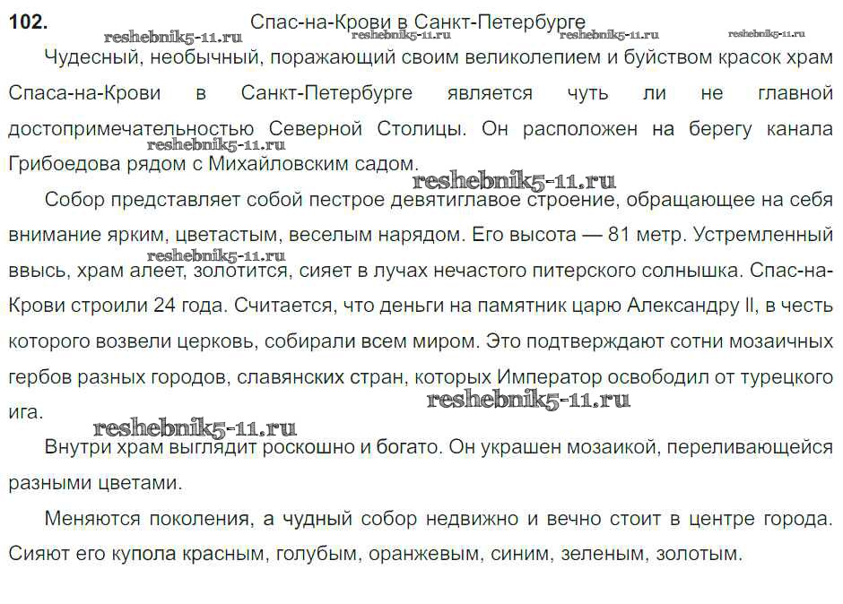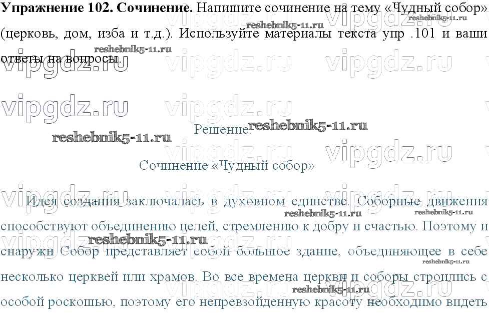 Готовая домашняя работа с ответами по Русскому языку за 8 класс Тростенцова, Ладыженская, Дейкина, Александрова Учебник Просвещение 2014 ФГОС - Упражнения 102