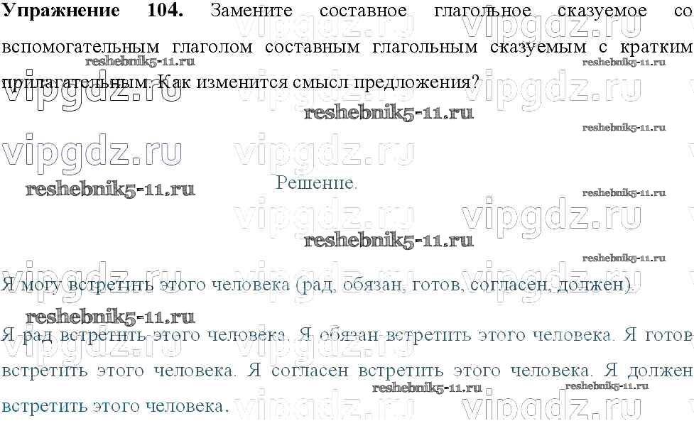 Готовая домашняя работа с ответами по Русскому языку за 8 класс Тростенцова, Ладыженская, Дейкина, Александрова Учебник Просвещение 2014 ФГОС - Упражнения 104