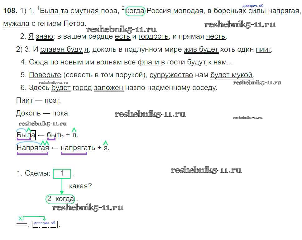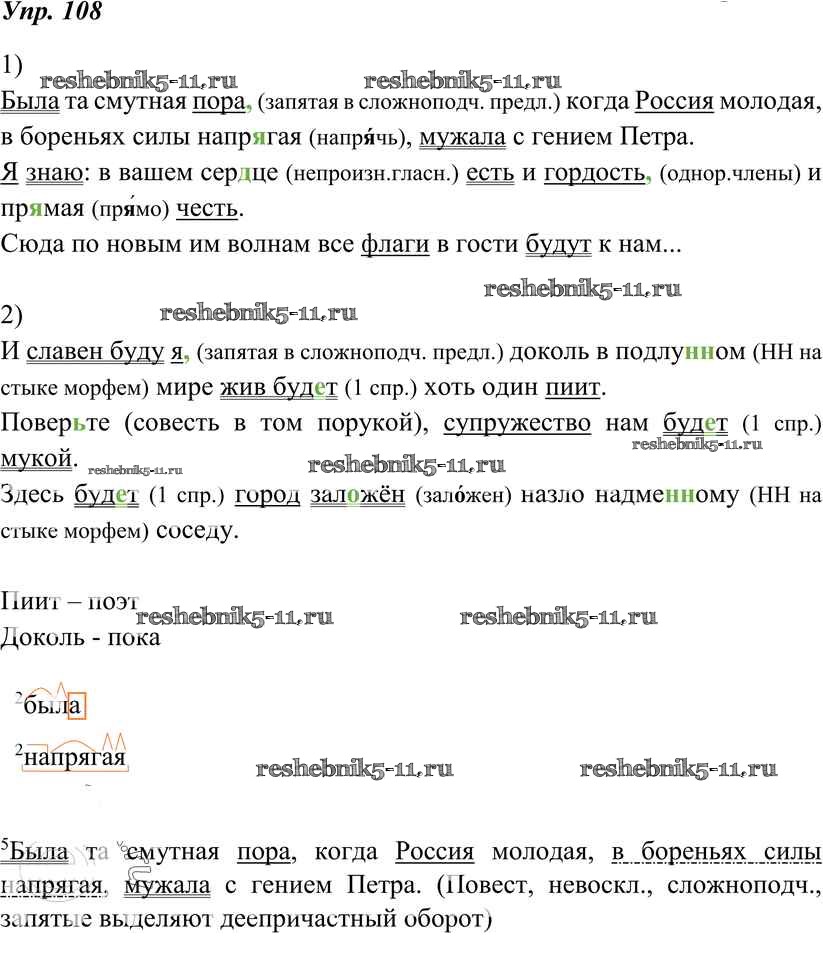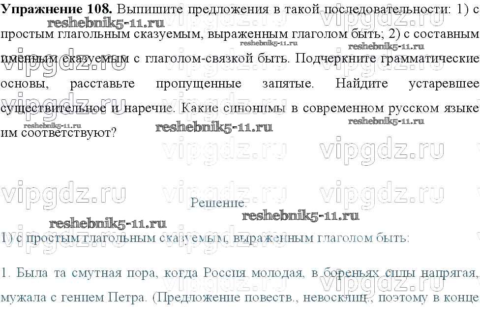 Готовая домашняя работа с ответами по Русскому языку за 8 класс Тростенцова, Ладыженская, Дейкина, Александрова Учебник Просвещение 2014 ФГОС - Упражнения 108