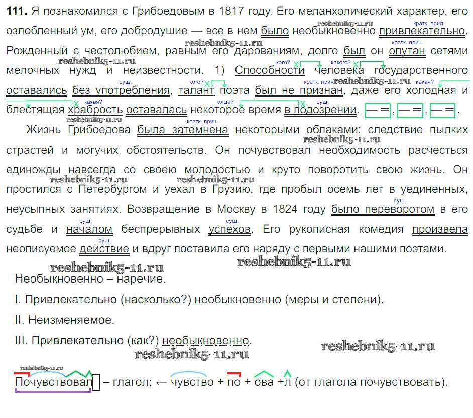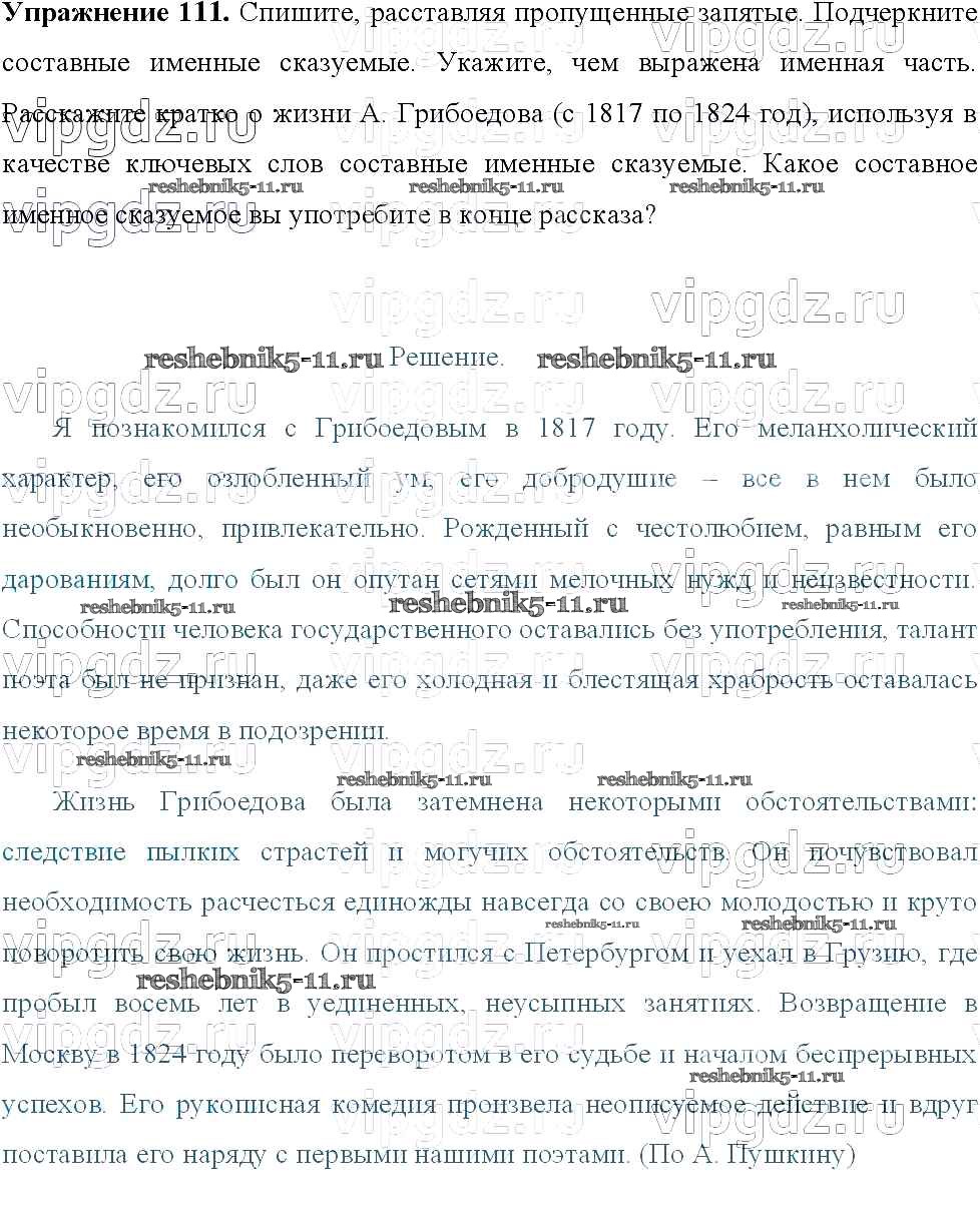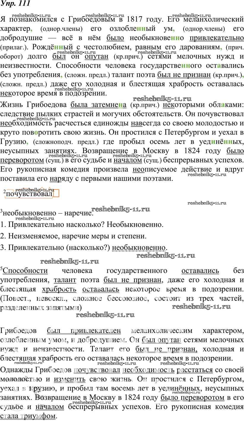Готовая домашняя работа с ответами по Русскому языку за 8 класс Тростенцова, Ладыженская, Дейкина, Александрова Учебник Просвещение 2014 ФГОС - Упражнения 111
