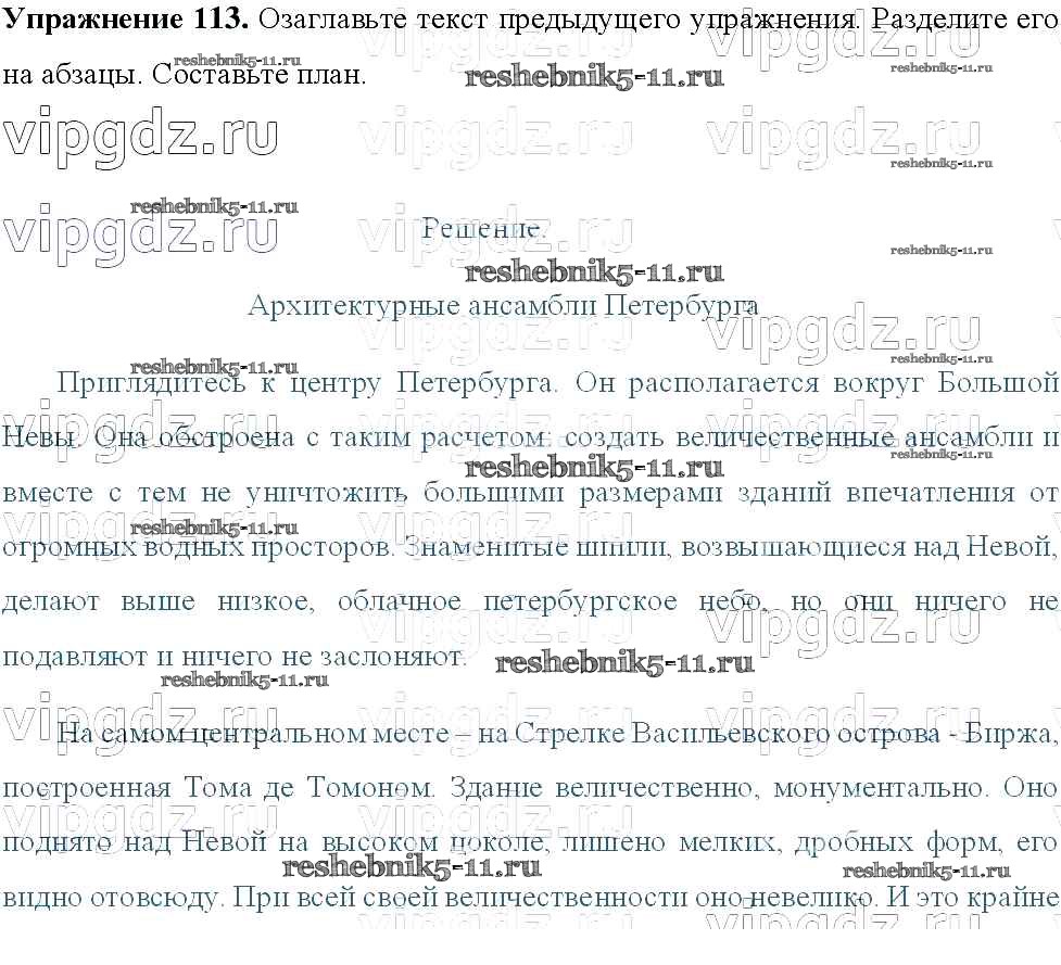 Русский язык за 8 класс Тростенцова Учебник Просвещение упражнение № 113