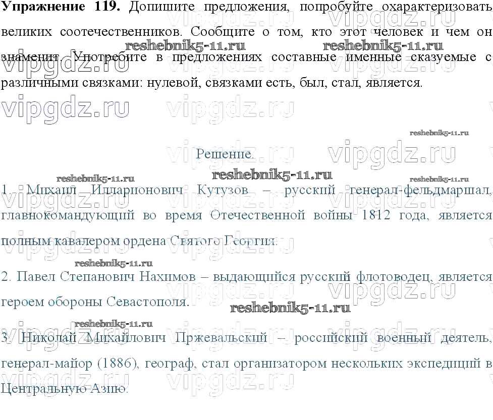 Готовая домашняя работа с ответами по Русскому языку за 8 класс Тростенцова, Ладыженская, Дейкина, Александрова Учебник Просвещение 2014 ФГОС - Упражнения 119