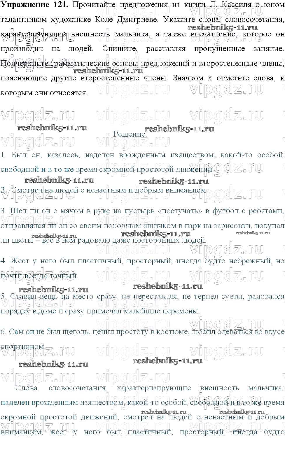 Готовая домашняя работа с ответами по Русскому языку за 8 класс Тростенцова, Ладыженская, Дейкина, Александрова Учебник Просвещение 2014 ФГОС - Упражнения 121