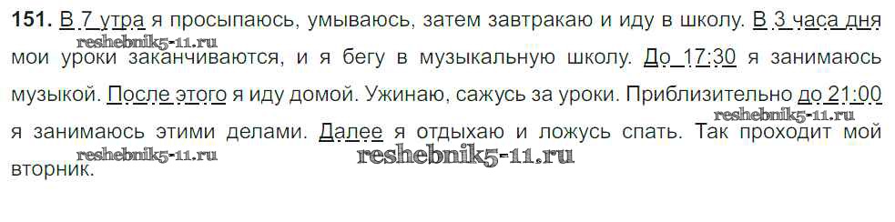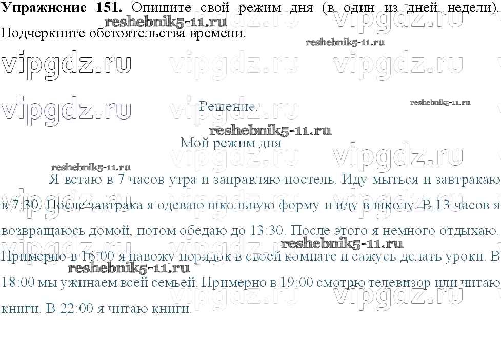 Готовая домашняя работа с ответами по Русскому языку за 8 класс Тростенцова, Ладыженская, Дейкина, Александрова Учебник Просвещение 2014 ФГОС - Упражнения 151