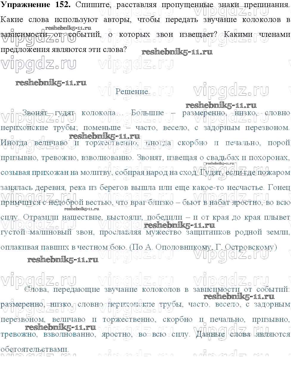Готовая домашняя работа с ответами по Русскому языку за 8 класс Тростенцова, Ладыженская, Дейкина, Александрова Учебник Просвещение 2014 ФГОС - Упражнения 152