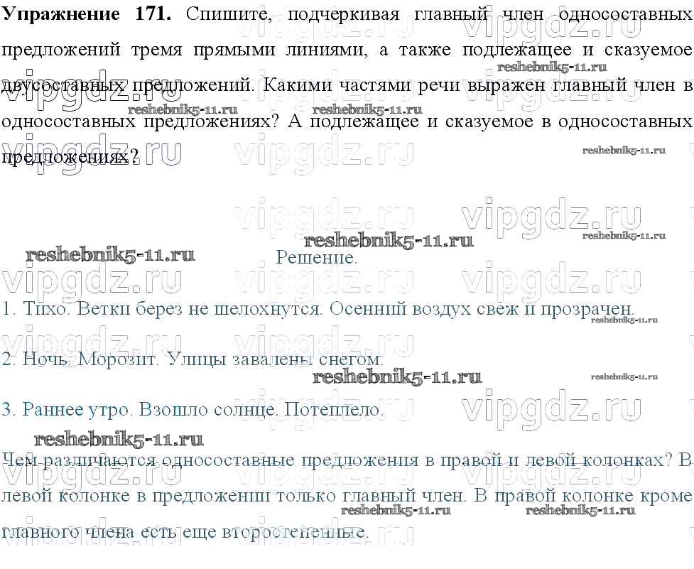 Готовая домашняя работа с ответами по Русскому языку за 8 класс Тростенцова, Ладыженская, Дейкина, Александрова Учебник Просвещение 2014 ФГОС - Упражнения 171
