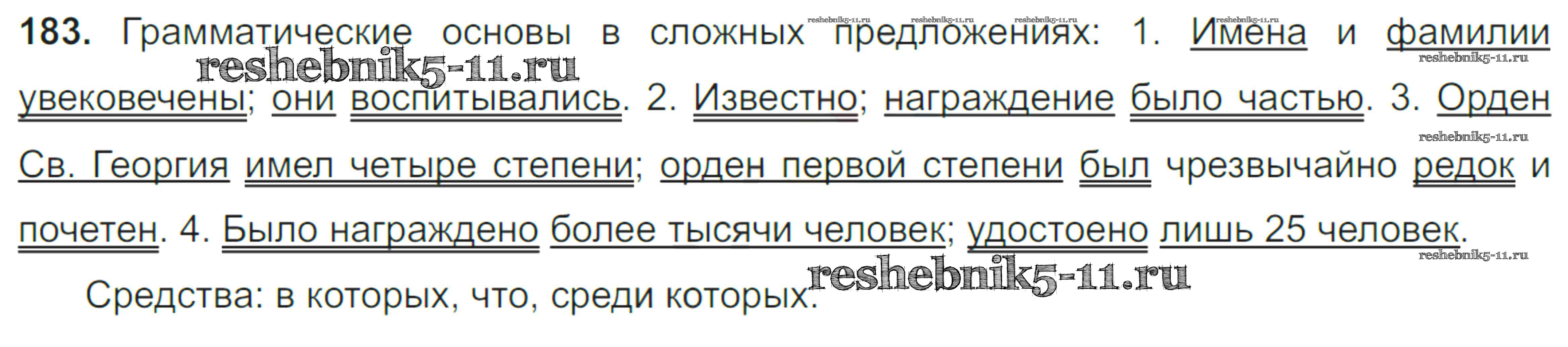 Готовая домашняя работа с ответами по Русскому языку за 8 класс Тростенцова, Ладыженская, Дейкина, Александрова Учебник Просвещение 2014 ФГОС - Упражнения 183