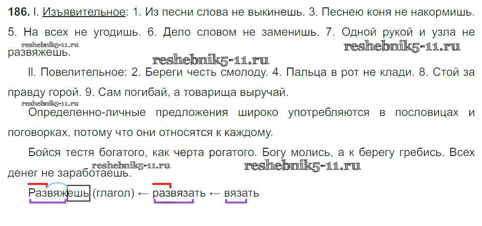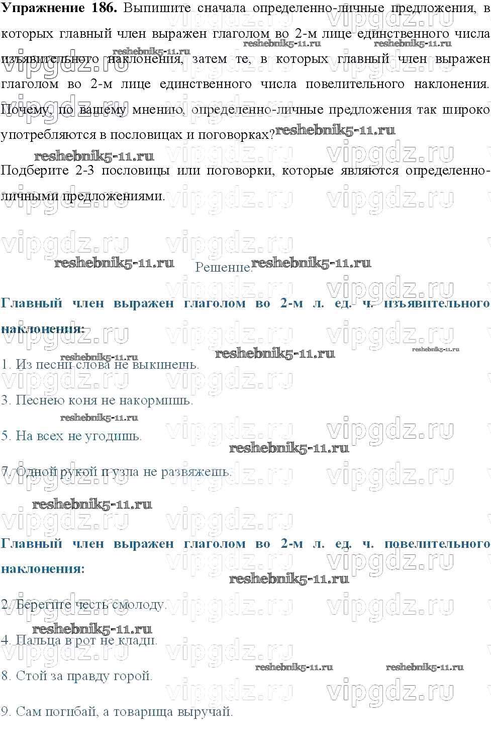 Готовая домашняя работа с ответами по Русскому языку за 8 класс Тростенцова, Ладыженская, Дейкина, Александрова Учебник Просвещение 2014 ФГОС - Упражнения 186
