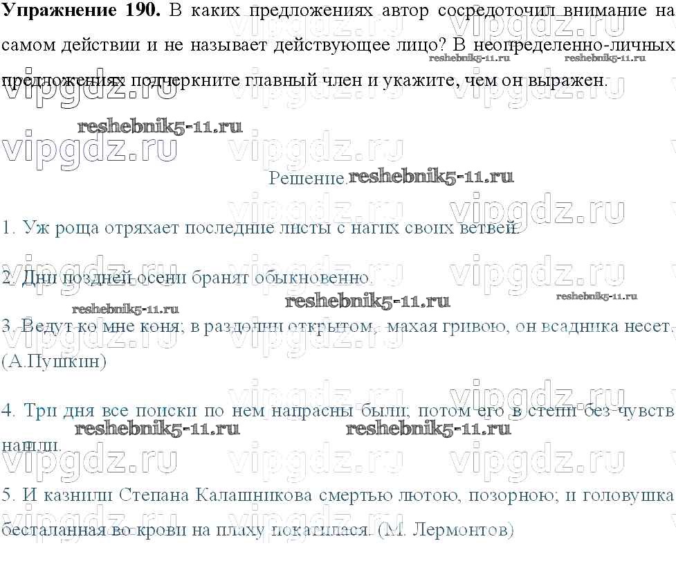 Готовая домашняя работа с ответами по Русскому языку за 8 класс Тростенцова, Ладыженская, Дейкина, Александрова Учебник Просвещение 2014 ФГОС - Упражнения 190