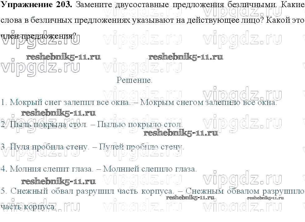 Готовая домашняя работа с ответами по Русскому языку за 8 класс Тростенцова, Ладыженская, Дейкина, Александрова Учебник Просвещение 2014 ФГОС - Упражнения 203