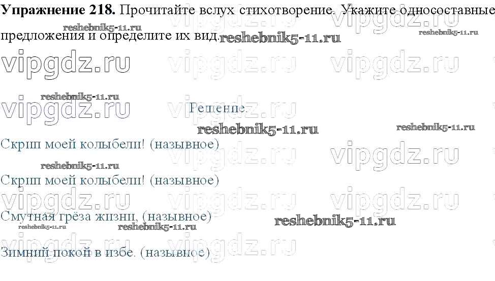 Готовая домашняя работа с ответами по Русскому языку за 8 класс Тростенцова, Ладыженская, Дейкина, Александрова Учебник Просвещение 2014 ФГОС - Упражнения 218